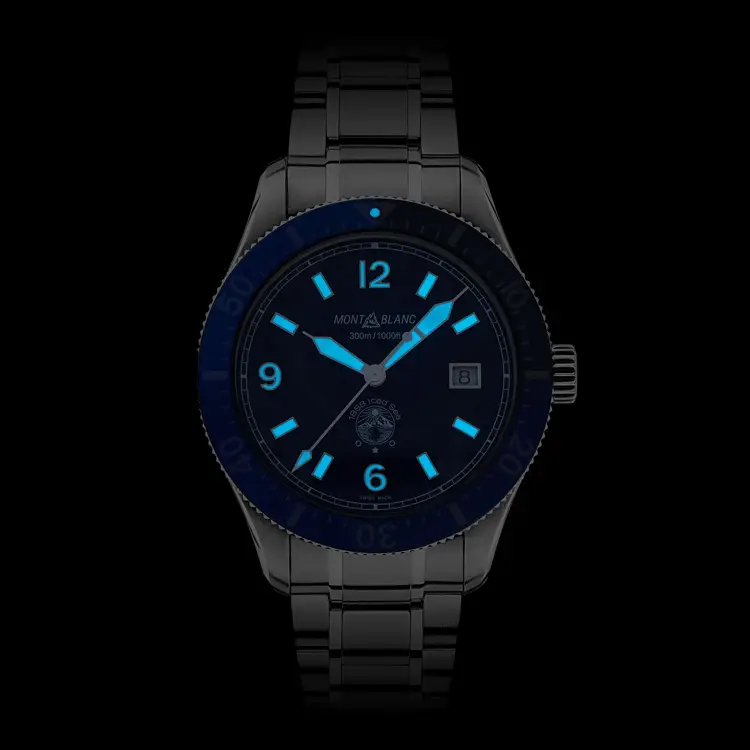 На циферблате находится окошко даты в районе 3 часов, а люминесцентные стрелки и метки обеспечивают отличную читаемость даже в экстремальных условиях. Внутри работает надёжный автоматический механизм Montblanc MB 24.17, который гарантирует точный и бесперебойный ход без необходимости ручного подзавода.