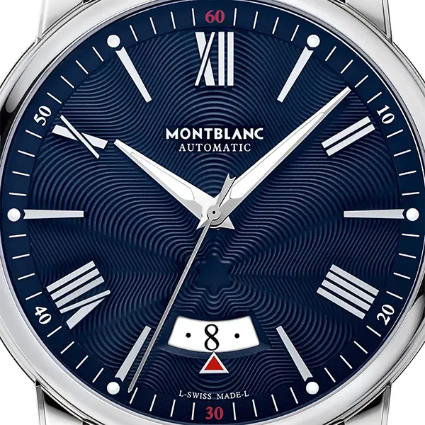 Montblanc 4810 Automatic Date 119960 — это элегантная модель, сочетающая в себе классический дизайн и часовое мастерство высокого уровня – идеальный выбор для современного джентльмена с утончённым вкусом. Круглый корпус диаметром 42 мм выполнен из нержавеющей стали и дополнен сапфировым стеклом, которое защищает часы от царапин и обеспечивает прозрачный обзор на синий аналоговый циферблат с утонченным лучистым узором.
