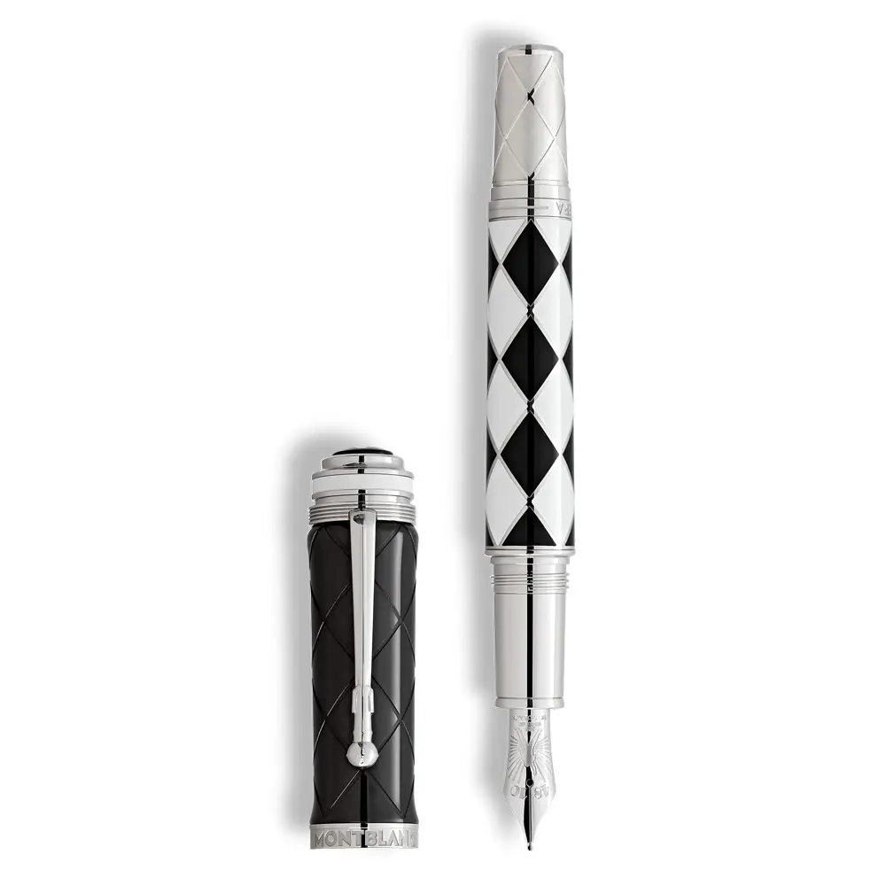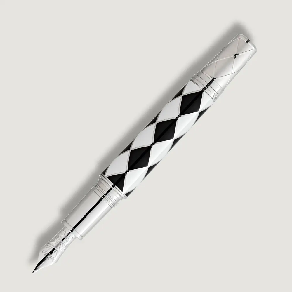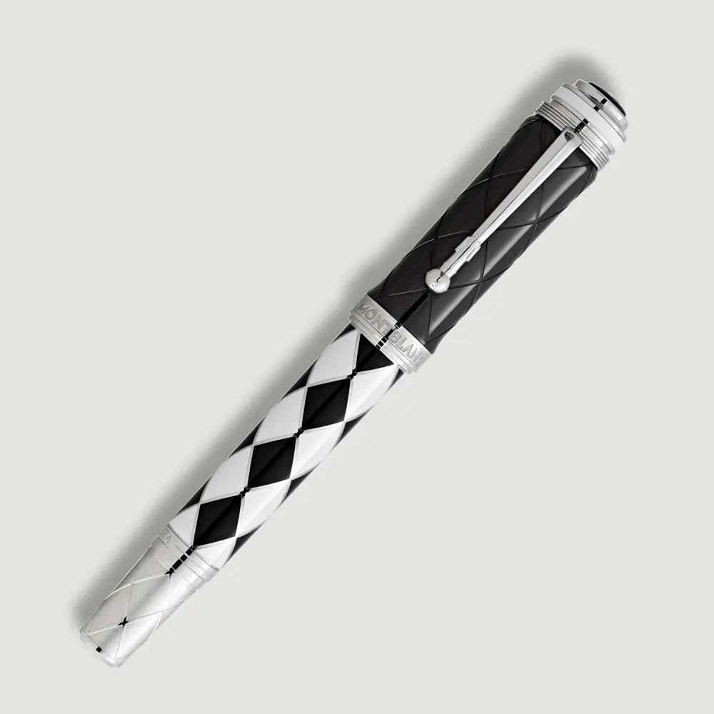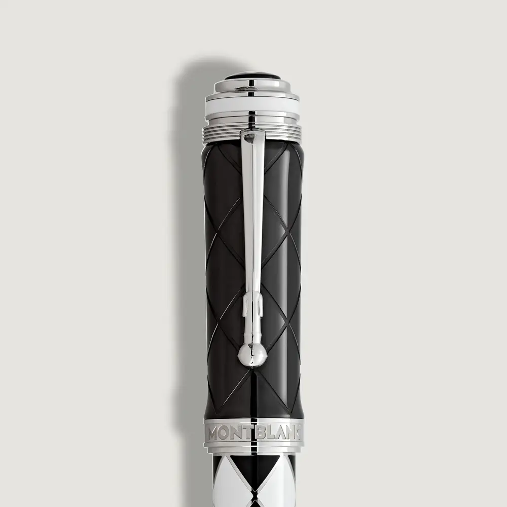 Это перо из лимитированной серии Great Characters посвящено культовой рок-группе Queen и году 1975, когда вышел их легендарный альбом A Night at the Opera. Корпус сочетает металл с платиновым покрытием, чёрный лак и тонкие декоративные элементы, вдохновленные визуальным стилем группы. На колпачке изображены мотивы, связанные с участниками Queen, а клип выполнен в форме, напоминающей стойку микрофона Фредди Меркьюри. Контраст чёрного и белого, дополненный художественными акцентами, передаёт дух и смелую эстетику Queen.