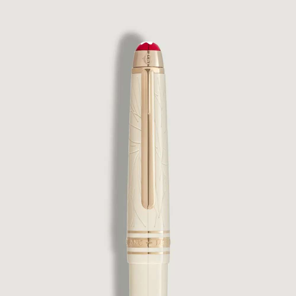 Корпус из драгоценной смолы цвета слоновой кости отличается гладкой поверхностью, обеспечивает комфортный захват и элегантный внешний вид. Колпачок из драгоценной смолы украшен изящным мотивом пера, вдохновлённым ангельскими крыльями, основанным на цитате «O, speak again, bright angel!» и подчёркивающим романтический характер дизайна.