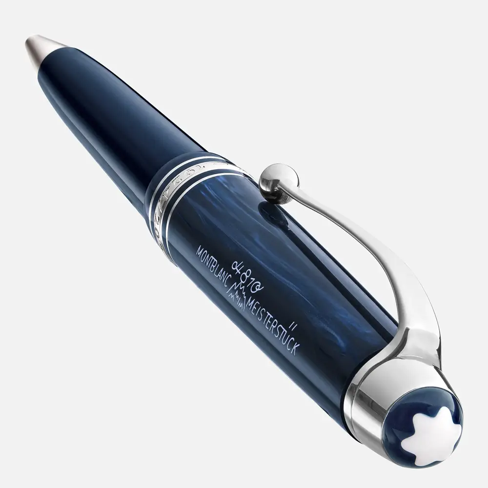 Корпус и колпачок выполнены из синей драгоценной смолы, оттенок которой символизирует глубину и уверенность. Клип с платиновым покрытием придаёт элегантный блеск, а размеры 141,1 × 13,8 мм обеспечивают комфорт и идеальный баланс.