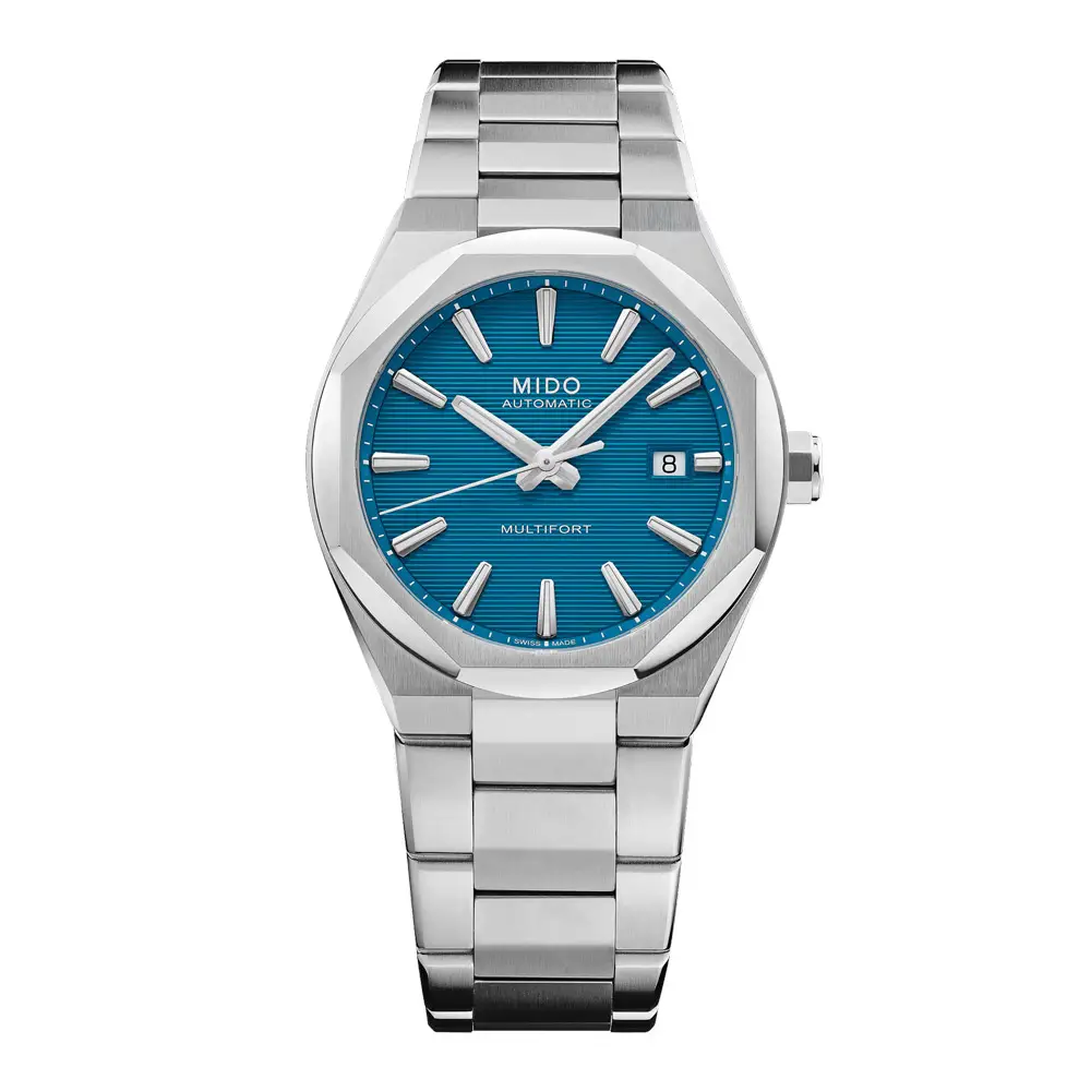 Модель Mido Multifort 8 One Crown выделяется современным дизайном с архитектурным характером, который подчёркивают выразительный восьмиугольный безель и интегрированный стальной браслет. Динамичный синий текстурированный циферблат придаёт часам глубину и современный стиль, а люминесцентные стрелки и метки обеспечивают отличную читаемость. Гармоничное сочетание спортивной эстетики и элегантности делает модель универсальным выбором.