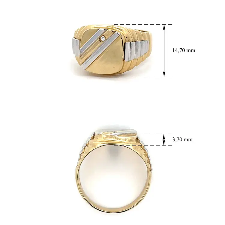 Мужское кольцо с цирконом из комбинированного золота