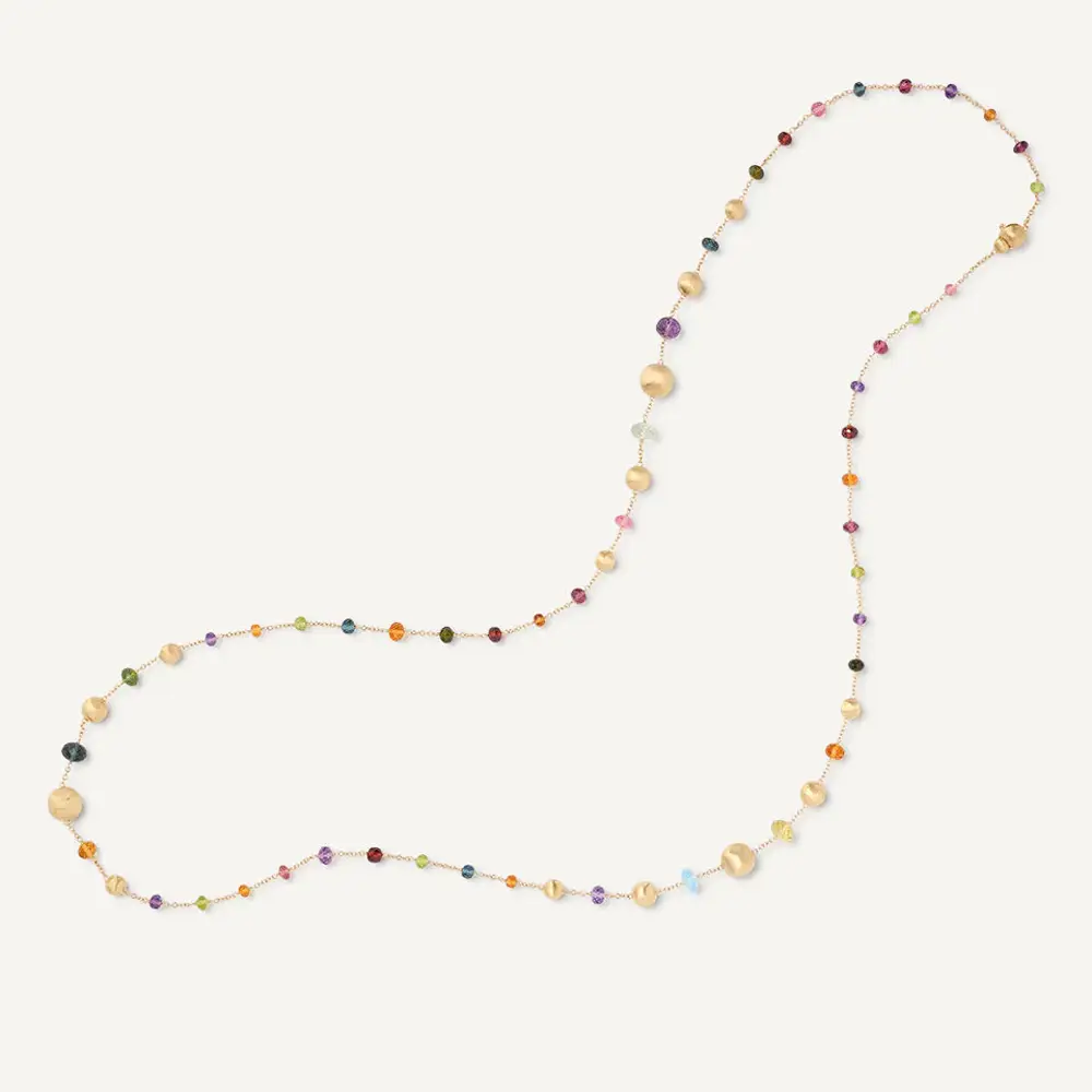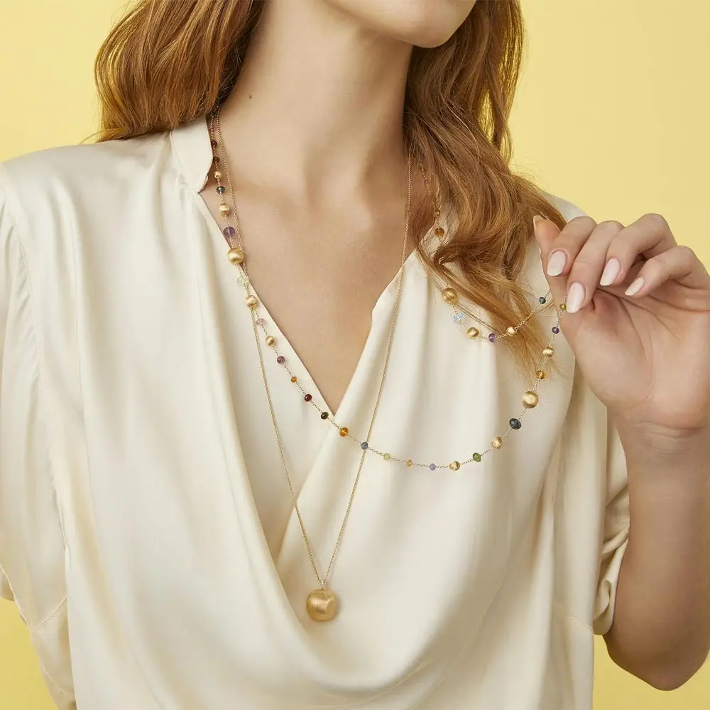 Колье Marco Bicego Africa CB2230 MIX02 Y воплощает гармонию итальянского мастерства и природной красоты. Изготовлено из жёлтого золота 18 карат (750/1000) с глянцевой и матовой отделкой, длиной 92 см, оно элегантно ложится на шею и придаёт образу изысканность. Каждая деталь выполнена вручную, отражая фирменный стиль Marco Bicego.