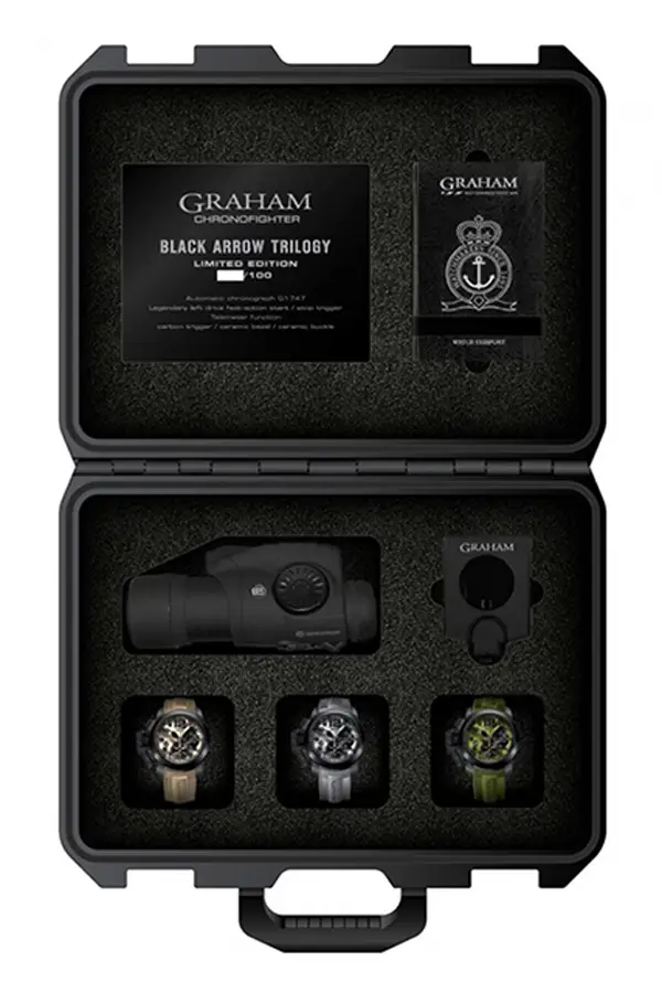 Graham Chronofighter Oversize Black Arrow Set — это не просто часы, это настоящее заявление для мужчин, которые ценят оригинальность, эксклюзивность и любовь к приключениям. Эта модель сочетает в себе смелый дизайн, техническое совершенство и ограниченную доступность в едином уникальном исполнении.
