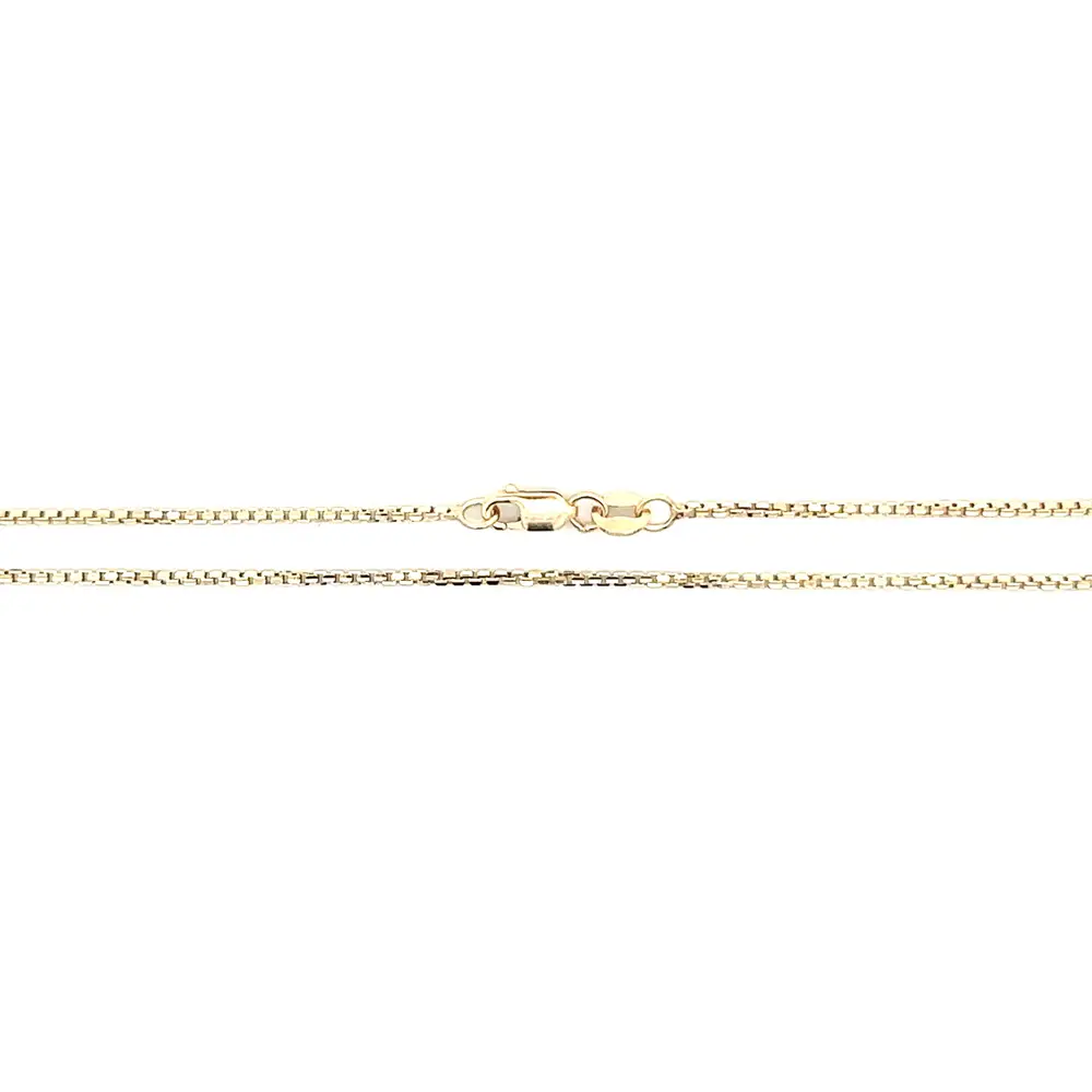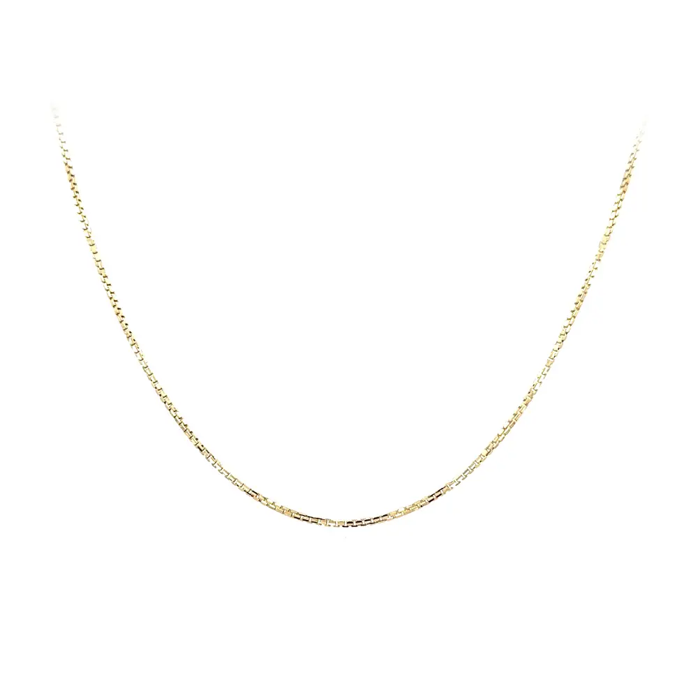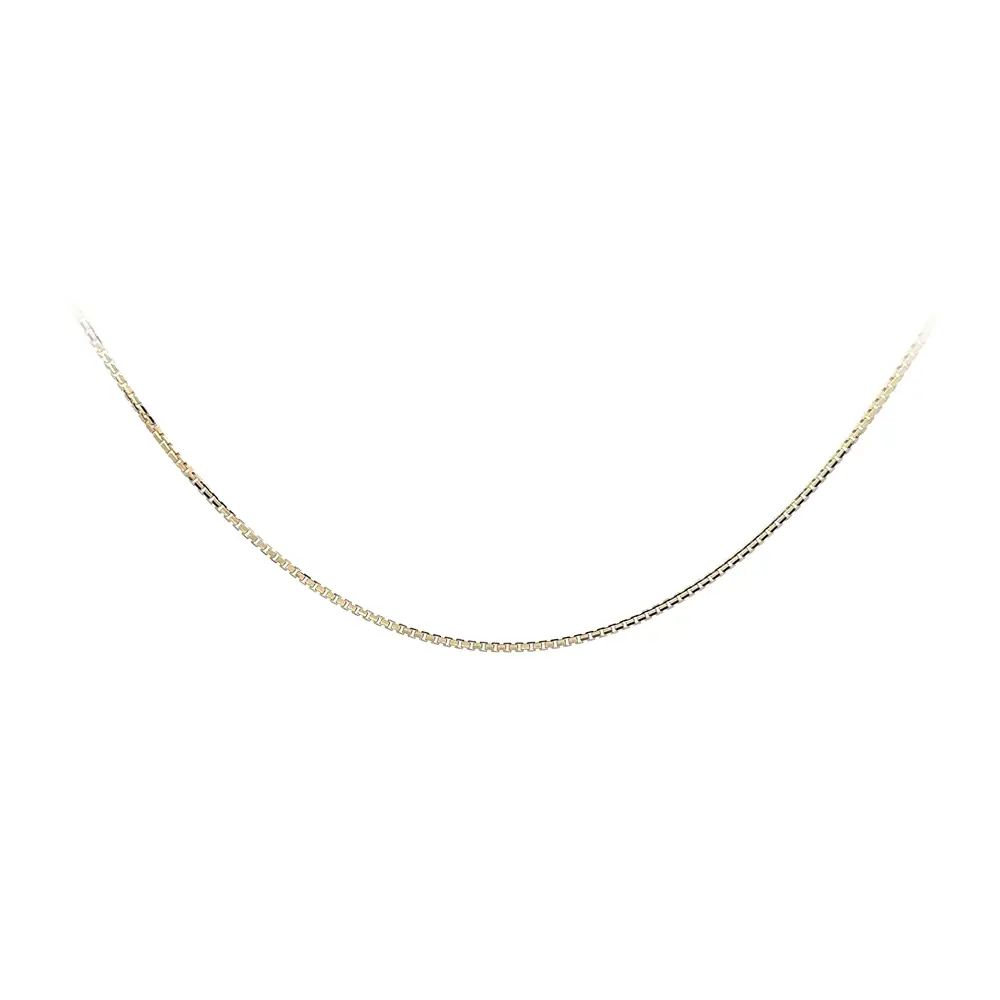 Нежная золотая цепочка плетения Box отличается чистым и вневременным дизайном, идеально подходящим для самостоятельного ношения или в сочетании с подвеской. Точно выполненные квадратные звенья Box создают аккуратную структуру с мягким блеском, придавая украшению современный и универсальный характер.