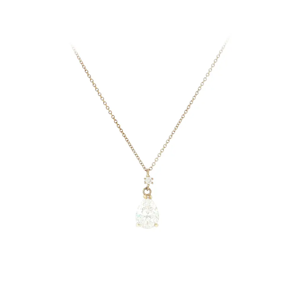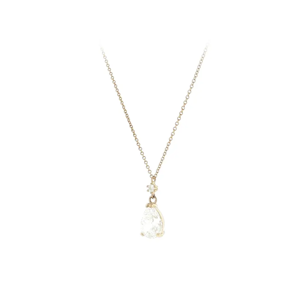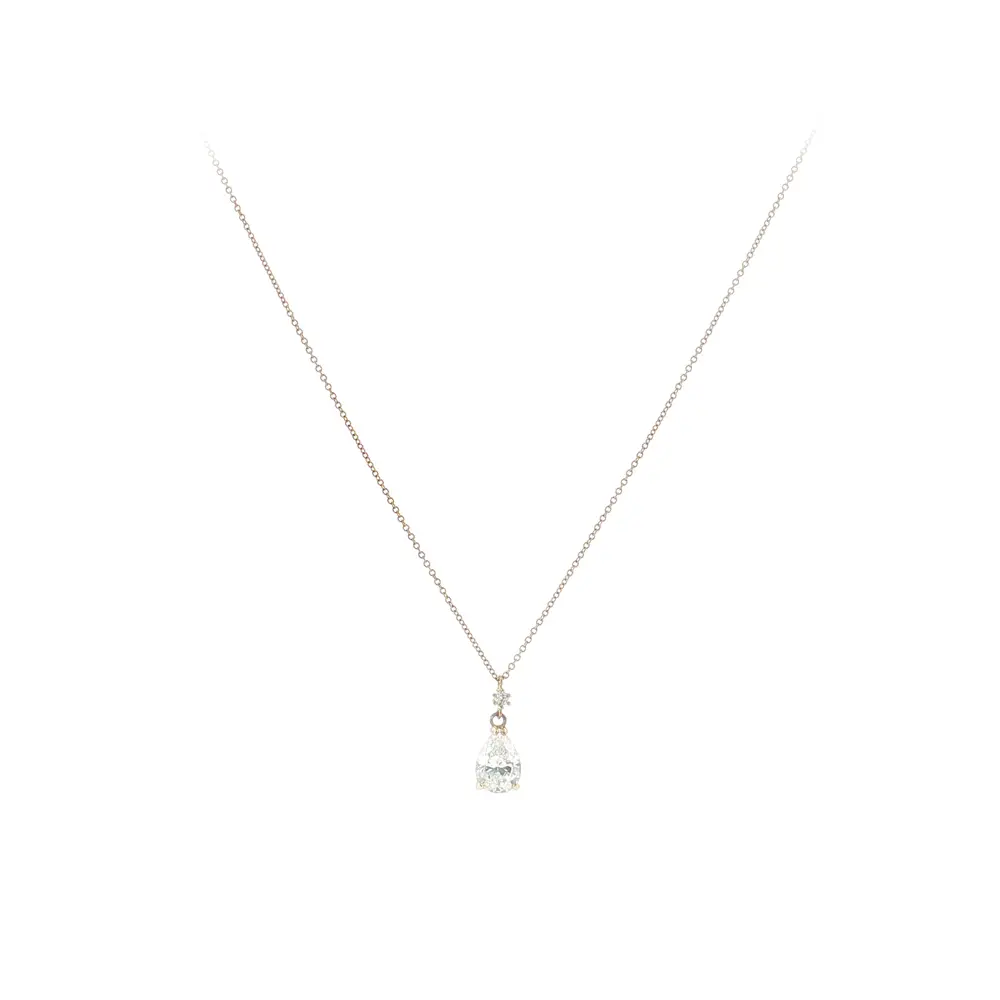 Нежное золотое колье с цирконом в форме капли привлекает своим минималистичным дизайном и мягким блеском, который украшает любой образ. Камень в форме капли придаёт украшению женственность и вневременную элегантность.