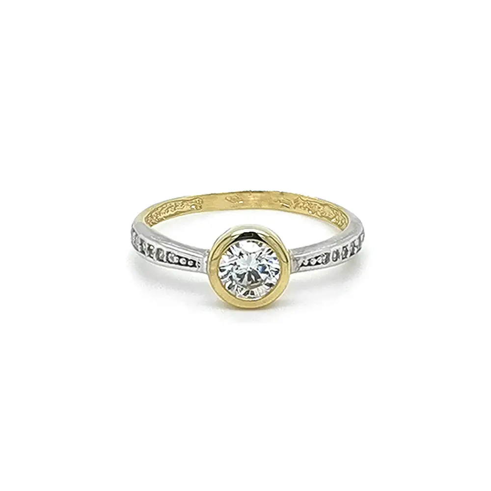 Обручальное кольцо с цирконами из комбинированного золота