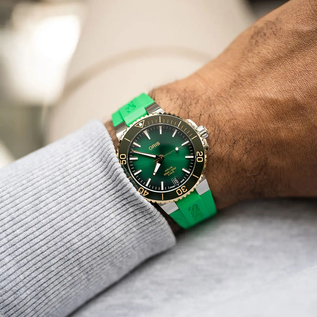 Oris Aquis - идеальный выбор для любителей водных видов спорта, приключений и повседневной носки, которым нужны надёжные, технически сложные и стильные часы со швейцарским качеством и индивидуальностью.