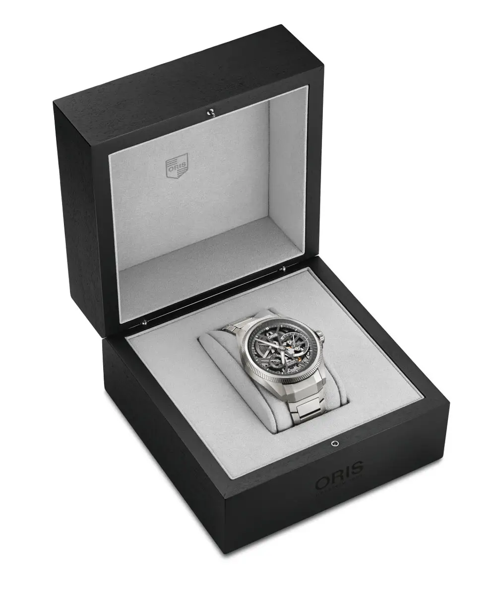 Часы поставляются на чёрном каучуковом ремешке с титановой застёжкой и системой удлинения для дайверского костюма. Oris AquisPro 4000m Calibre 115 воплощает экстремальную надёжность, технологические инновации и исключительное мастерство, идеально подходя для профессионалов и коллекционеров, ценящих абсолютную точность даже в самых суровых условиях.