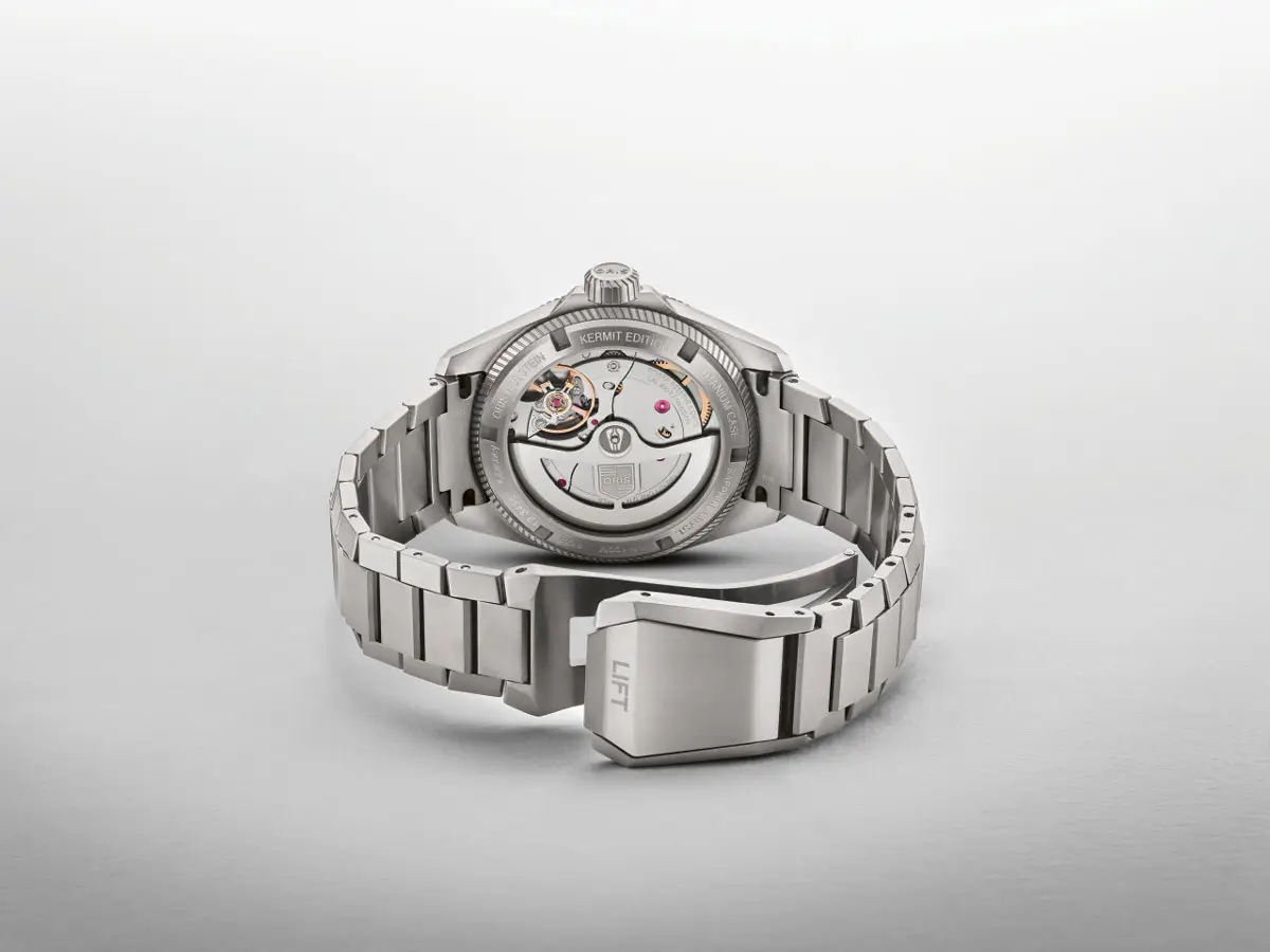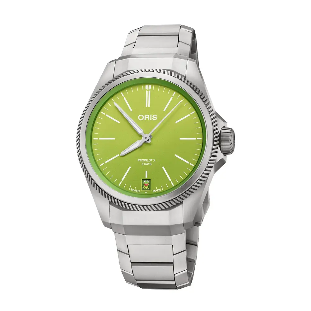 Каждое первое число месяца в окошке даты появляется улыбка Кермита, напоминающая, что стоит немного замедлиться и насладиться жизнью. Oris ProPilot X Kermit Edition сочетает серьёзную механику с чувством радости – символ креативности, качества и оптимизма.