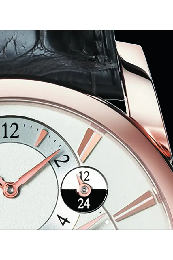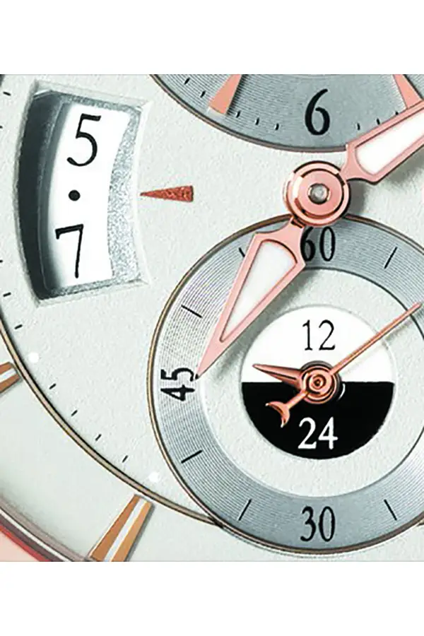 На белом аналоговом циферблате расположены дата и функция второго часового пояса, позволяющая одновременно отслеживать два времени — идеальное решение для часто путешествующих. Внутри корпуса работает механизм с автоматическим подзаводом, обеспечивающий точный и стабильный ход.