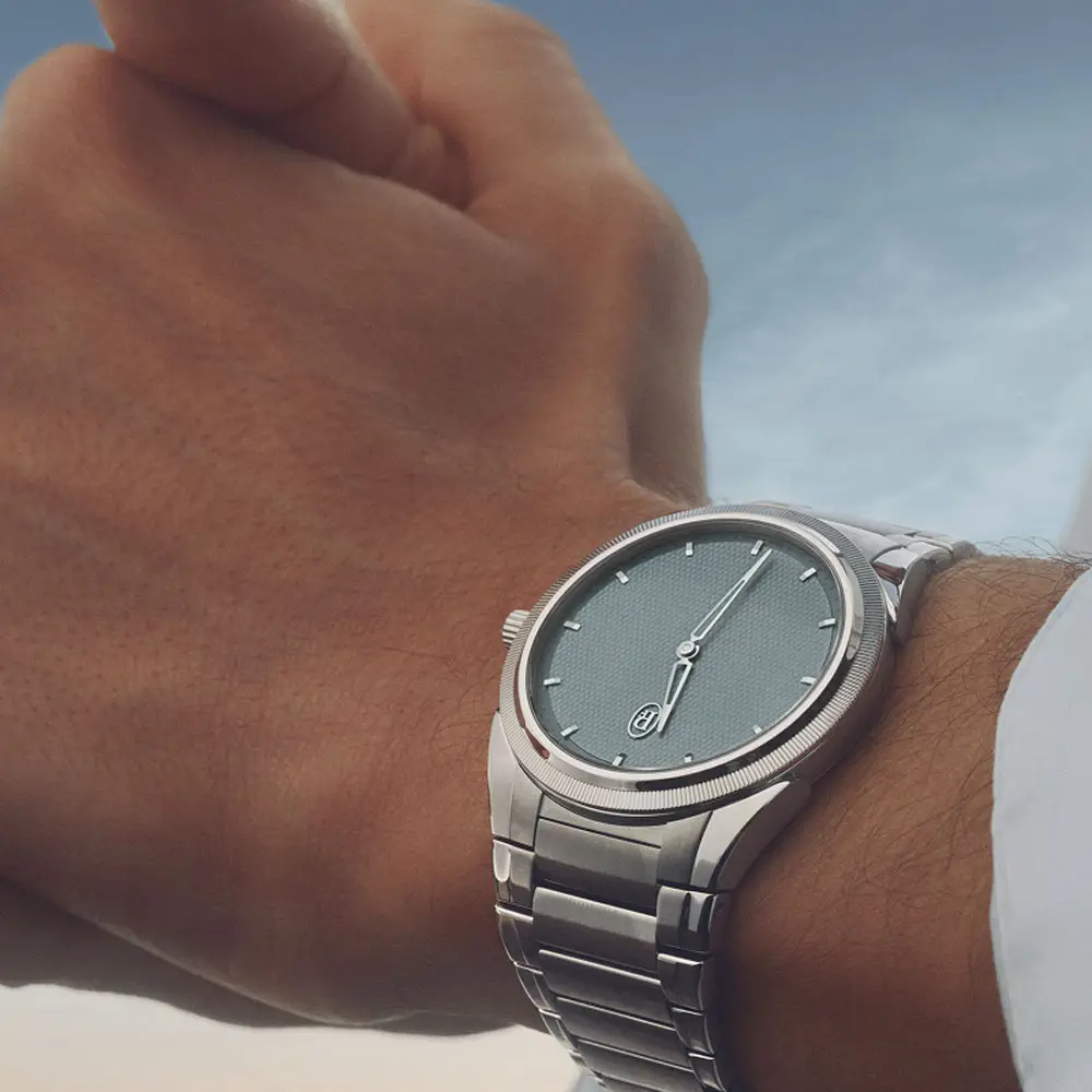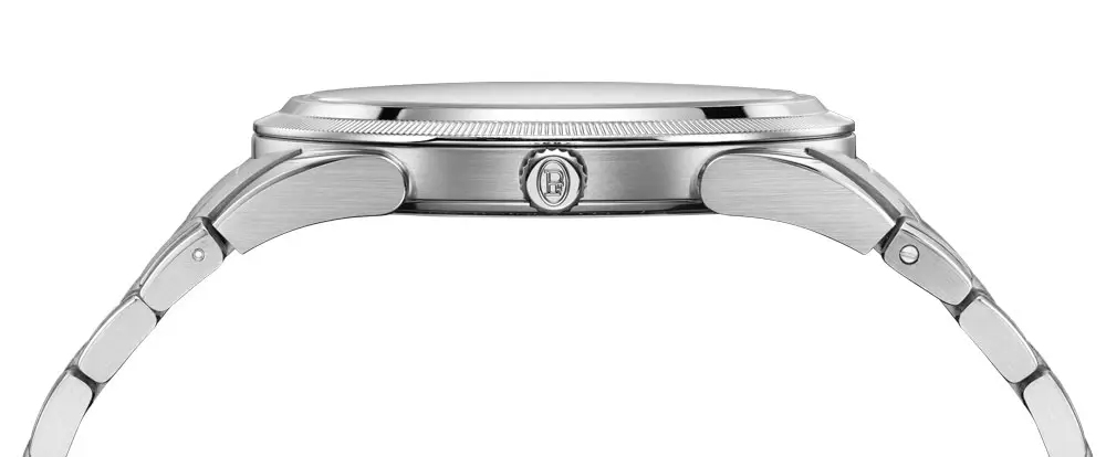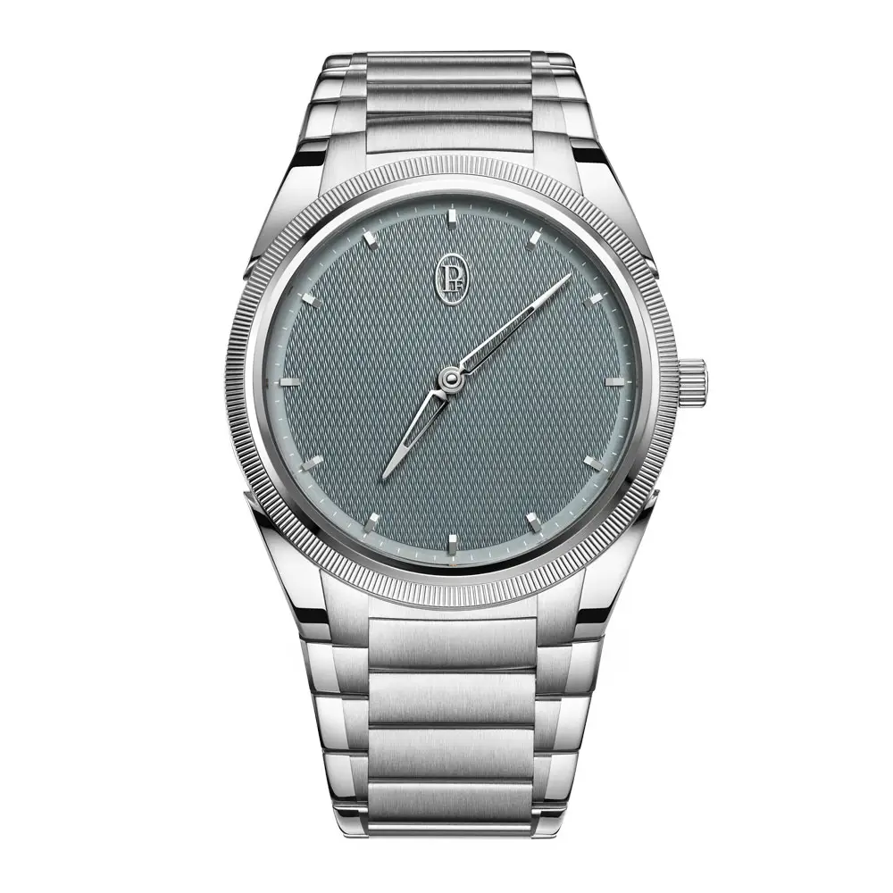 Интегрированный стальной браслет обеспечивает комфорт. Сапфировое стекло и прозрачная задняя крышка позволяют рассмотреть механизм. Отличный выбор для тех, кто ищет роскошные минималистичные часы.
