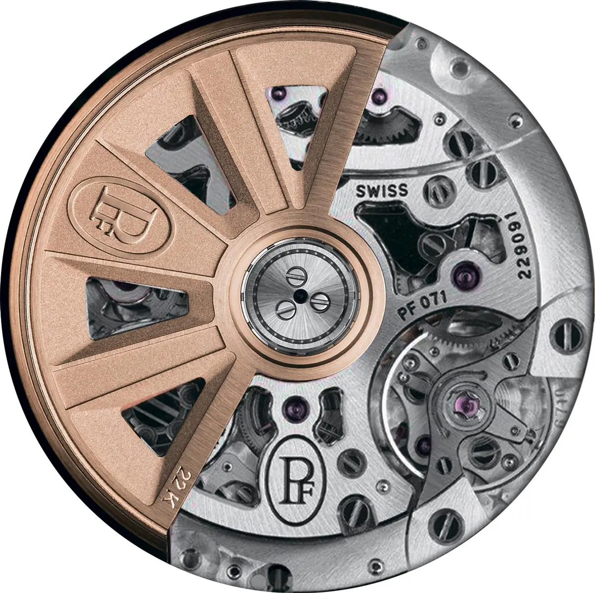 Коллекция Tonda PF — это воплощение дизайнерской и технической философии Parmigiani Fleurier. Представленная в 2021 году к 25-летию бренда, она символизирует чистоту формы, внимание к деталям и современное прочтение классической роскоши. Аббревиатура «PF» означает не только «Parmigiani Fleurier», но и служит знаком авторства самых изысканных и утончённых творений марки.