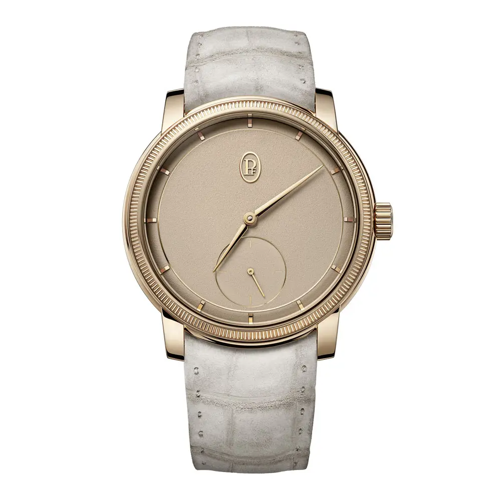 Parmigiani Toric Petite Seconde Rose Gold “Dune” олицетворяет чистую элегантность и вне времени стиль. Корпус диаметром 40,6 мм изготовлен из розового золота 18 карат, а его тёплый оттенок гармонично сочетается с циферблатом из цельного золота с ручным зернением в цвете «Dune». Этот изысканный тон напоминает песчаные дюны и придаёт модели неповторимый характер.