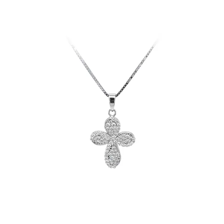 Подвеска Крест с цирконами из белого золота