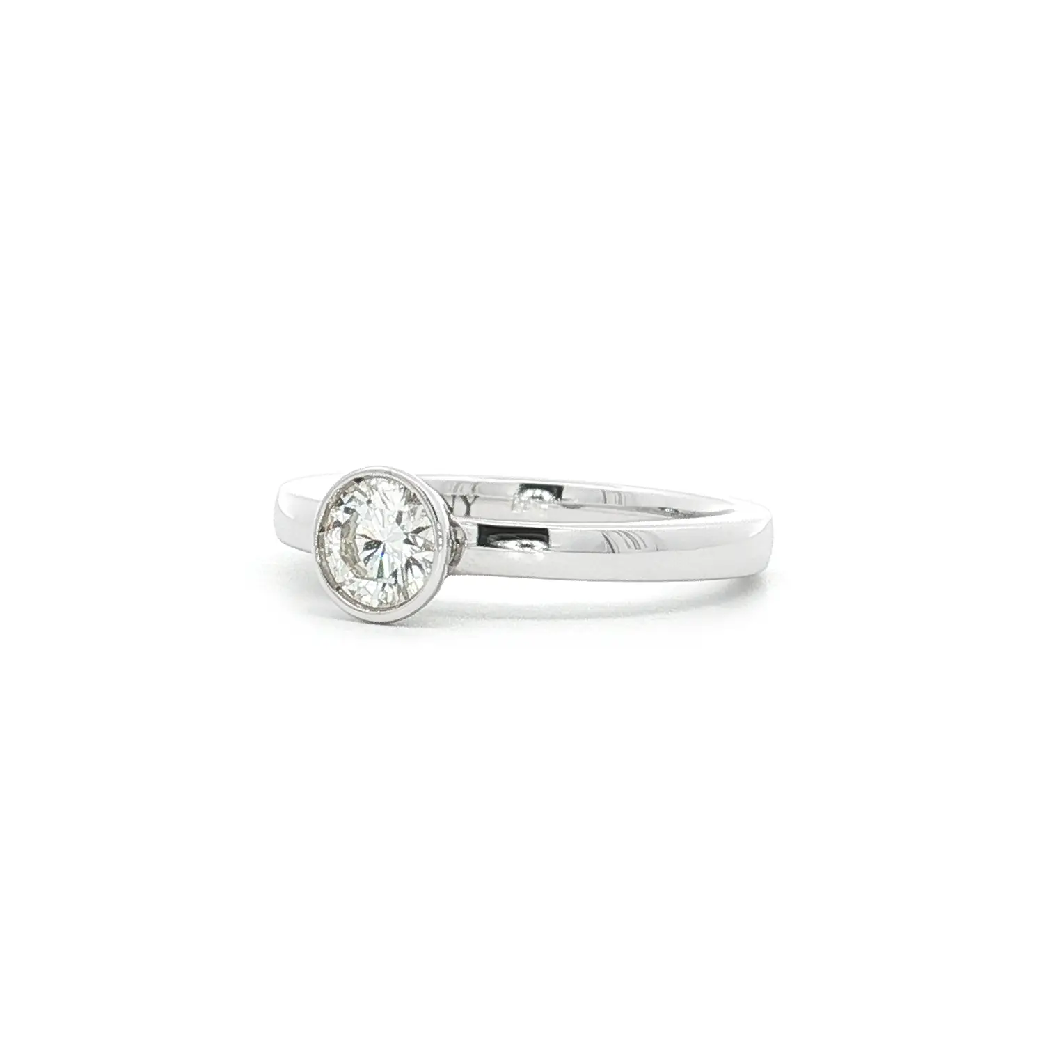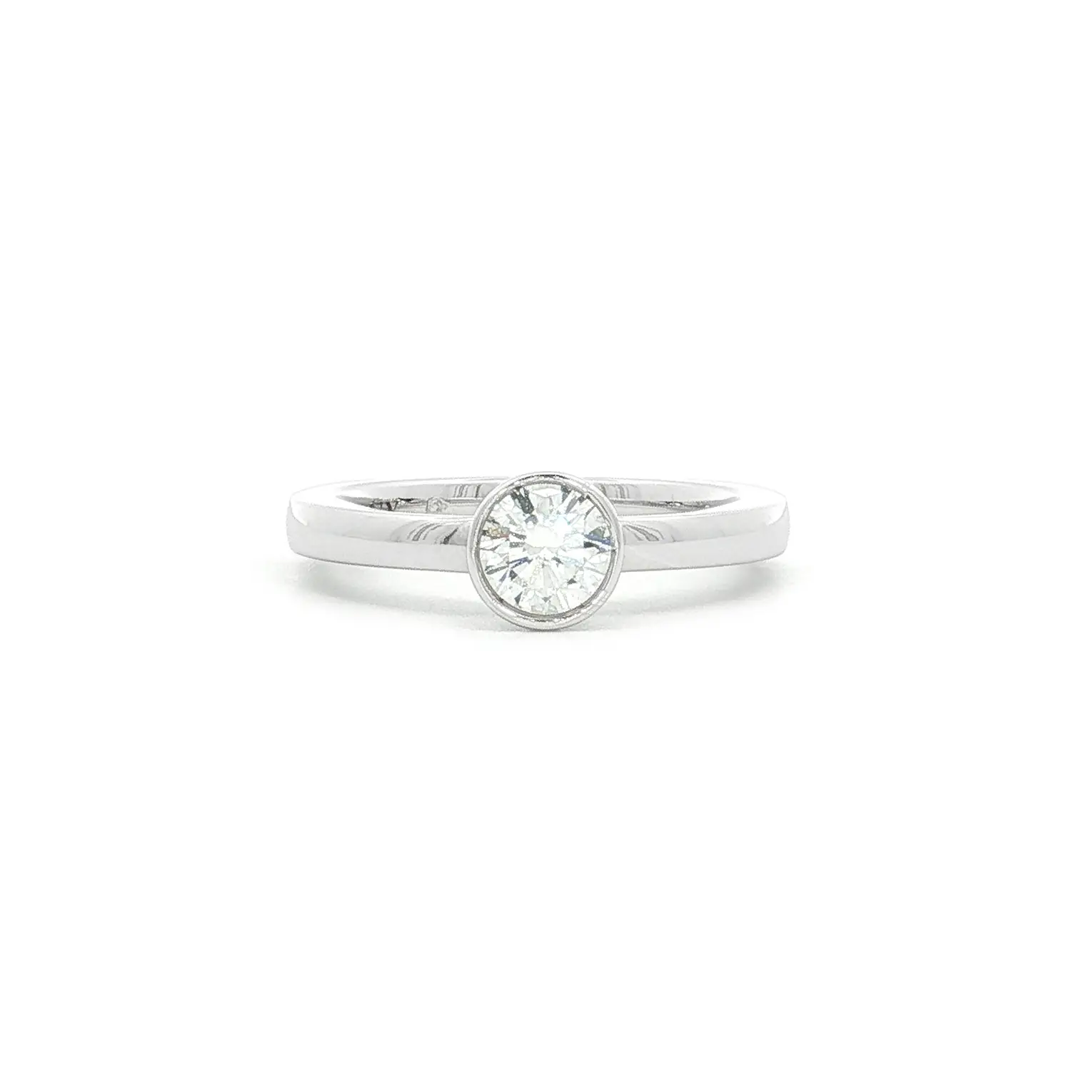 Это помолвочное кольцо из белого золота с бриллиантом 0,52 карата воплощает утончённую простоту и вечную элегантность. Центральный бриллиант круглой огранки закреплён в гладкой оправе, подчеркивающей его чистоту и яркость. Лаконичный дизайн делает акцент на камне — символе искренней любви и прочного союза.
