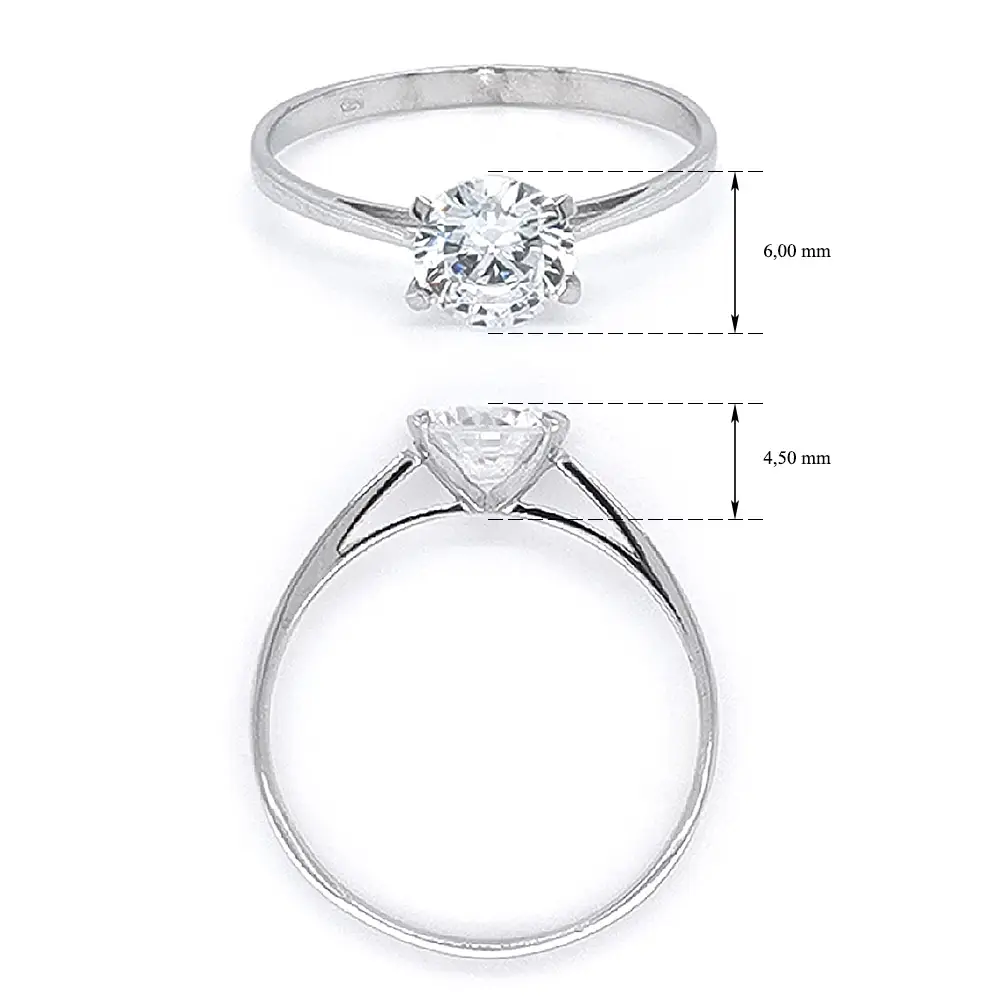 Помолвочное кольцо с цирконом из белого золота