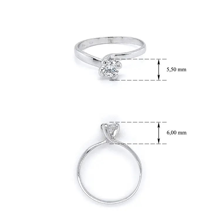 Помолвочное кольцо с цирконом из белого золота