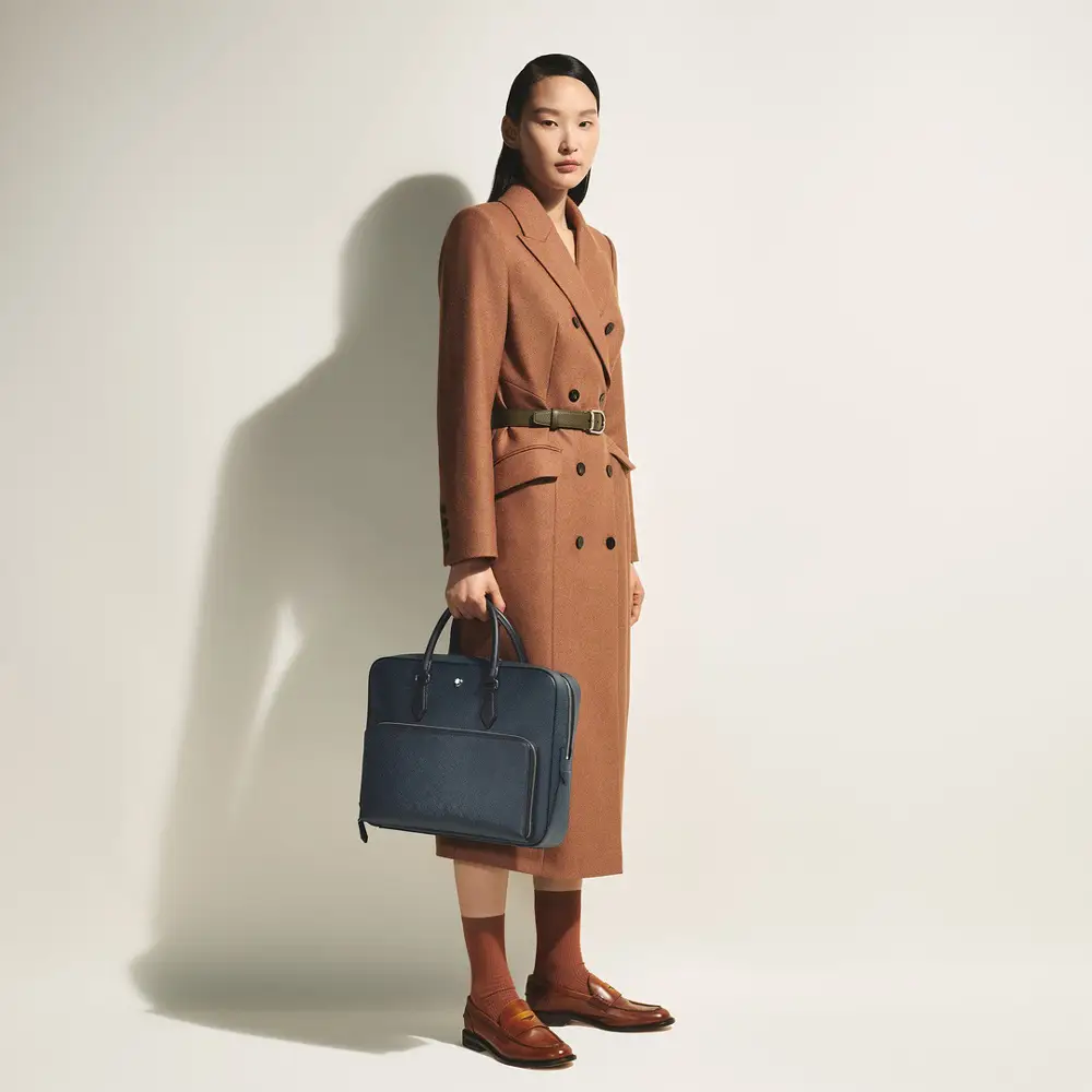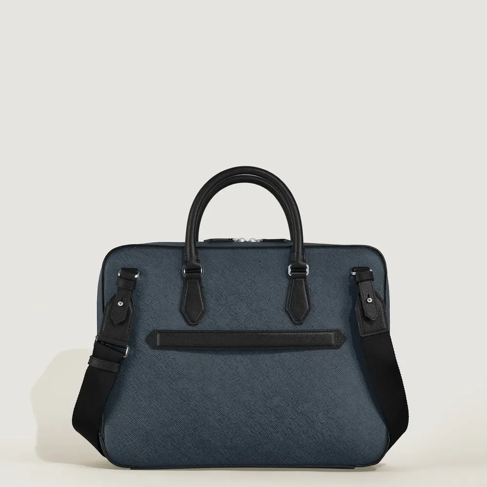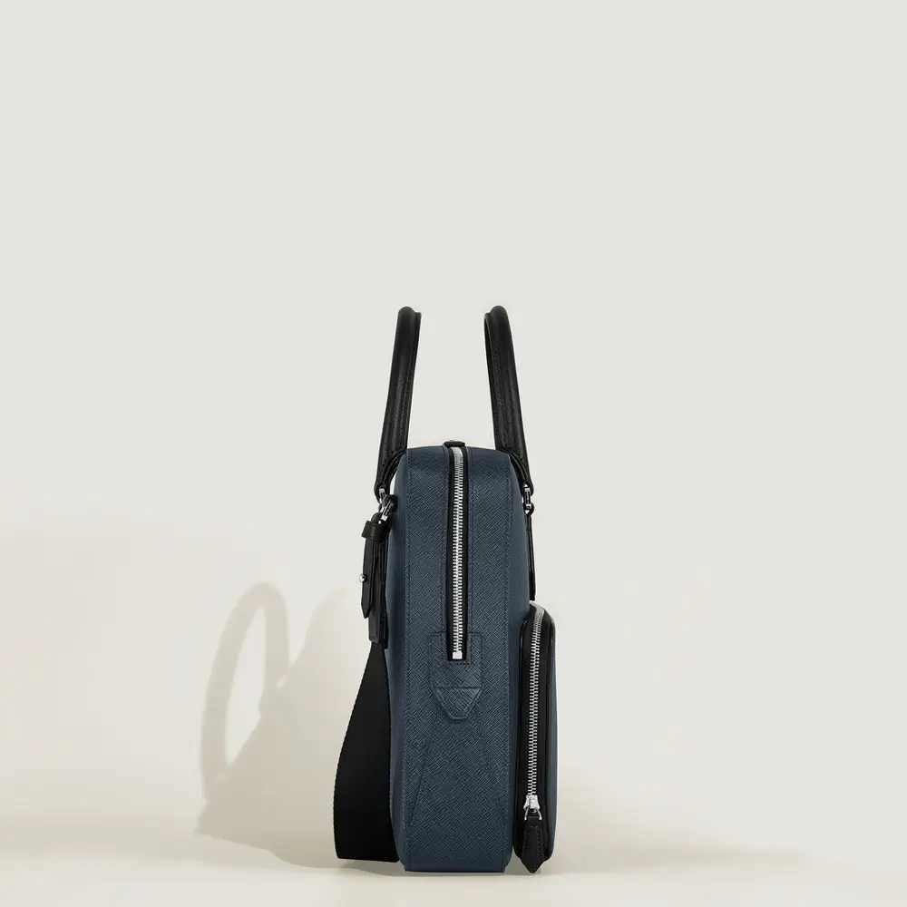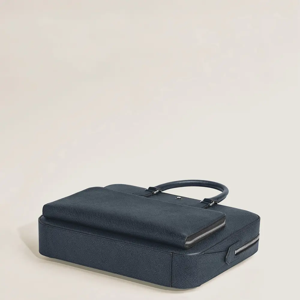 Портфель Montblanc Sartorial Medium в оттенке Tweed Blue сочетает современный стиль и элегантный деловой образ. Премиальная кожа телёнка с тиснением Saffiano придаёт изделию роскошный вид и высокую износостойкость, а минималистичные линии и культовый логотип Montblanc подчёркивают его утончённый характер. Основное отделение вмещает документы формата A4, ноутбук 13', планшет и повседневные рабочие принадлежности.