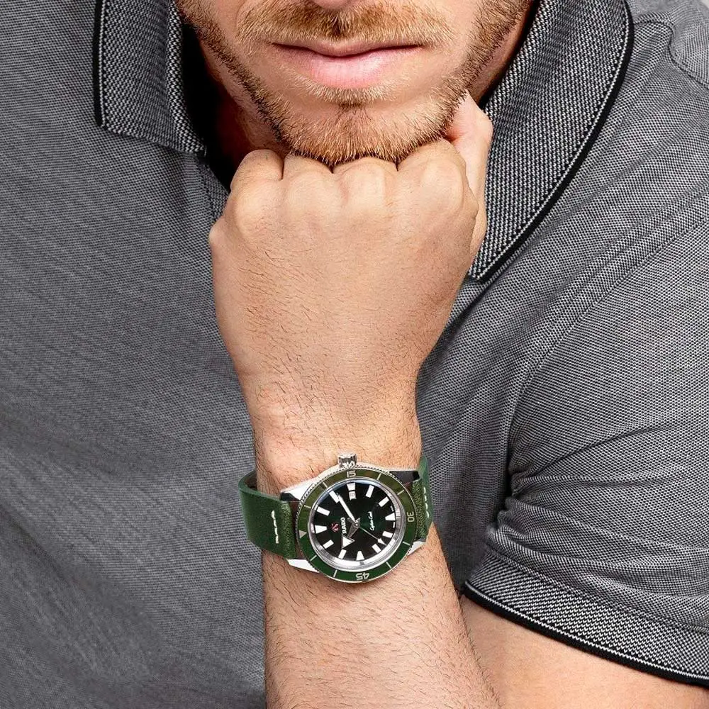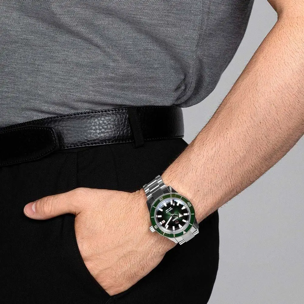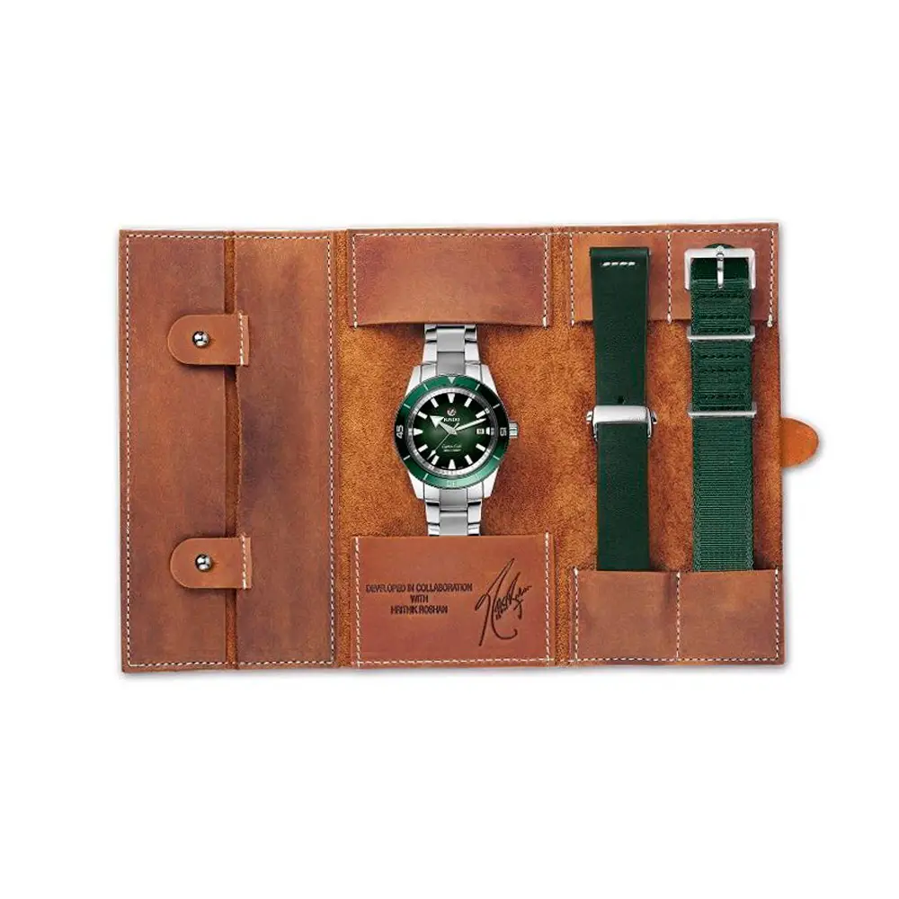 Rado Captain Cook Automatic Hrithik Roshan Special Edition R32105319 — это особая версия культовых дайверских часов, созданная в сотрудничестве с амбассадором бренда Rado и болливудской звездой Хритиком Рошаном. Модель оснащена корпусом из нержавеющей стали диаметром 42 мм и безелем из высокотехнологичной керамики зелёного цвета, гармонирующим с элегантным зелёным циферблатом. Люминесцентные стрелки и метки обеспечивают отличную читаемость, а сапфировое стекло с антибликовым покрытием защищает поверхность от повреждений.