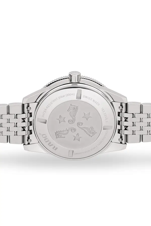 В основе часов — автоматический калибр Rado R763 с запасом хода до 80 часов, обеспечивающий стабильную точность и надёжность. Модель оснащена функциями часов, минут, секунд и индикатором даты на позиции 3 часа. Водонепроницаемость 200 м (20 ATM) делает часы подходящими для плавания и лёгкого дайвинга.