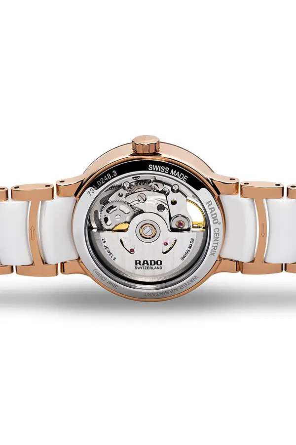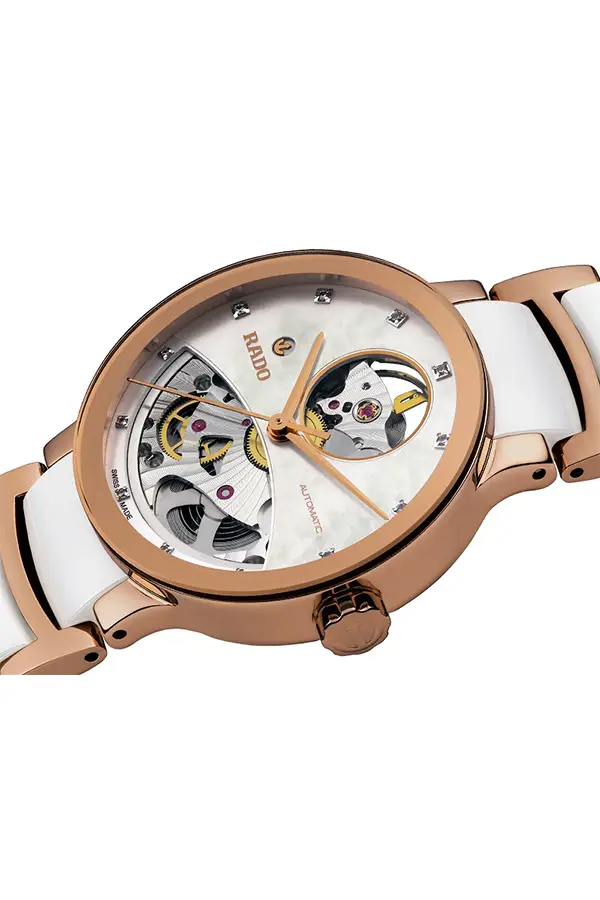 Браслет из стали и керамики с раскладной застёжкой сочетает комфорт и элегантность. Rado Centrix Ladies Automatic Open Heart Diamonds R30248902 — это символ вечной роскоши, объединяющий швейцарское мастерство и женственную изысканность, идеально подходящий для современной женщины с безупречным вкусом.