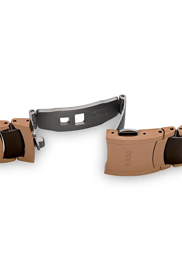 Элегантный круглый корпус диаметром 38 мм изготовлен из нержавеющей стали с розовым PVD-покрытием, придающим часам роскошный и тёплый вид. Его дополняет тщательно проработанный двухцветный браслет из керамики, стали и розового покрытия, который не только эффектно смотрится, но и отличается комфортом и прочностью. Сапфировое стекло защищает циферблат от царапин и обеспечивает долговечность внешнего вида.