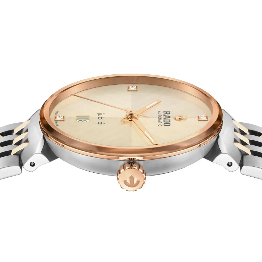 Элегантные автоматические женские часы, сочетающие вечную утонченность с точной швейцарской механикой. Модель Rado Florence Automatic R48903703 отличается шампань-циферблатом с четырьмя бриллиантами, подчеркивающими её роскошный характер. Розово-золотистый безель и сочетание матовых и полированных стальных элементов создают изысканный образ, подходящий как для работы, так и для вечерних мероприятий.
