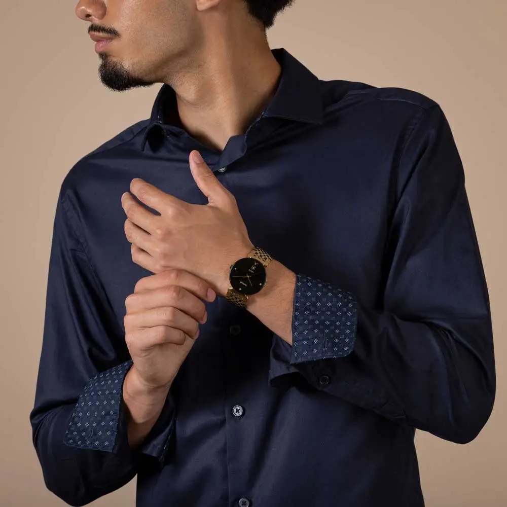 Циферблат защищён прочным сапфировым стеклом, устойчивым к царапинам. Окно даты на позиции 6 часов не нарушает чистоту дизайна, а раскладывающаяся застёжка обеспечивает комфорт и надёжность при ношении.