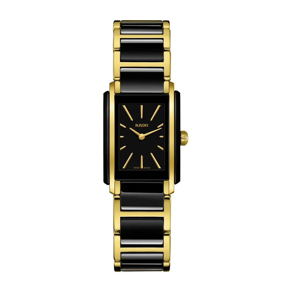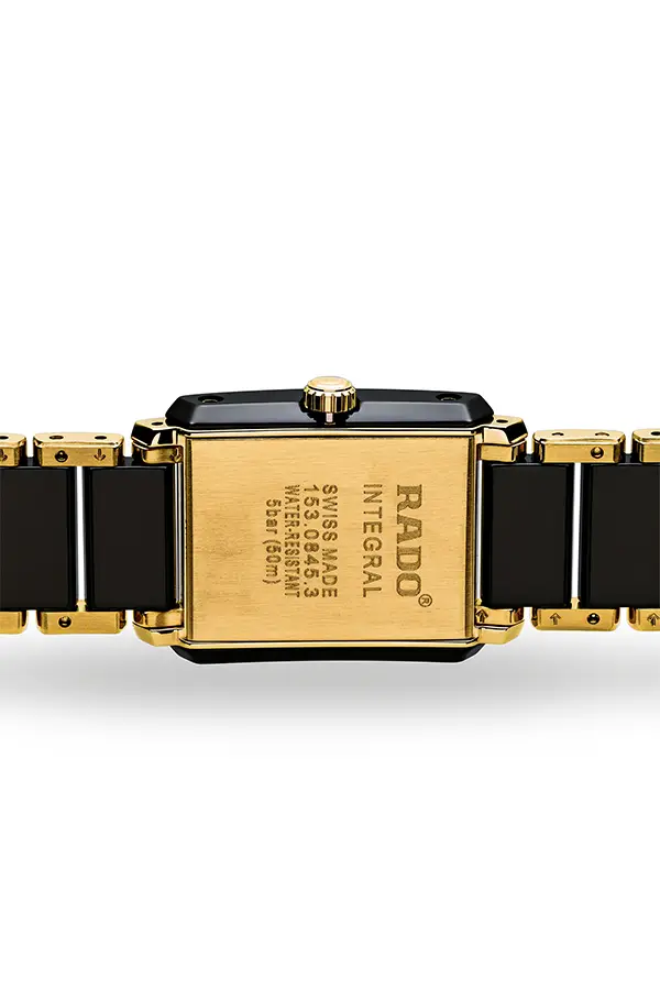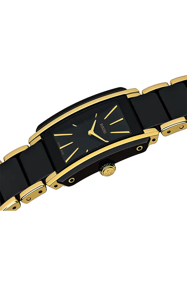 Rado Integral R20845162 — это элегантная унисекс-модель, сочетающая современный дизайн, премиальные материалы и высокоточную швейцарскую сборку. Характерный прямоугольный корпус размером 22,7 × 33,1 мм изготовлен из керамики, нержавеющей стали и покрытия из жёлтого золота, что обеспечивает не только прочность, но и исключительный стиль.