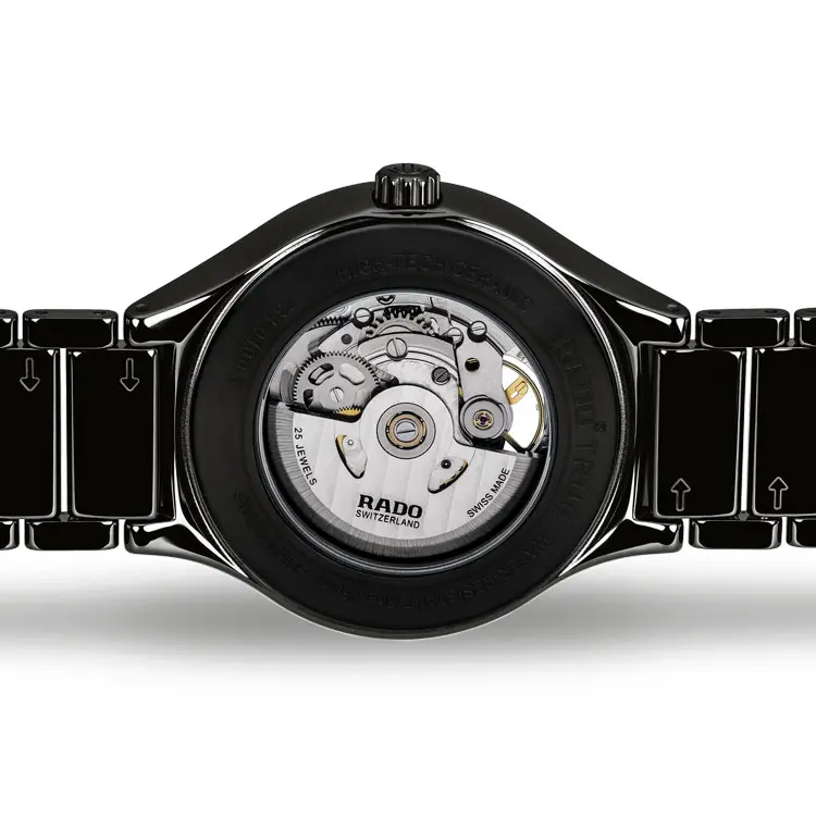 Интегрированный браслет из керамики и титана идеально сочетается с корпусом и обеспечивает комфортное ношение. Прозрачная задняя крышка открывает вид на вращающийся ротор. Rado True Round Secret R27107152 — воплощение швейцарских инноваций, вечной элегантности и технического совершенства, созданное для ценителей сдержанного стиля.