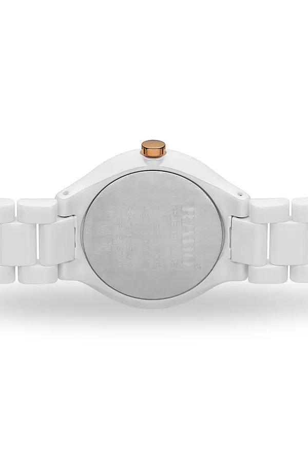 Rado True Thinline R27958722 — это воплощение минималистичной элегантности и швейцарской точности. Корпус диаметром 30 мм из белой высокотехнологичной керамики отличается ультратонким профилем всего 4,9 мм, благодаря чему часы выглядят изящно и элегантно на женском запястье.