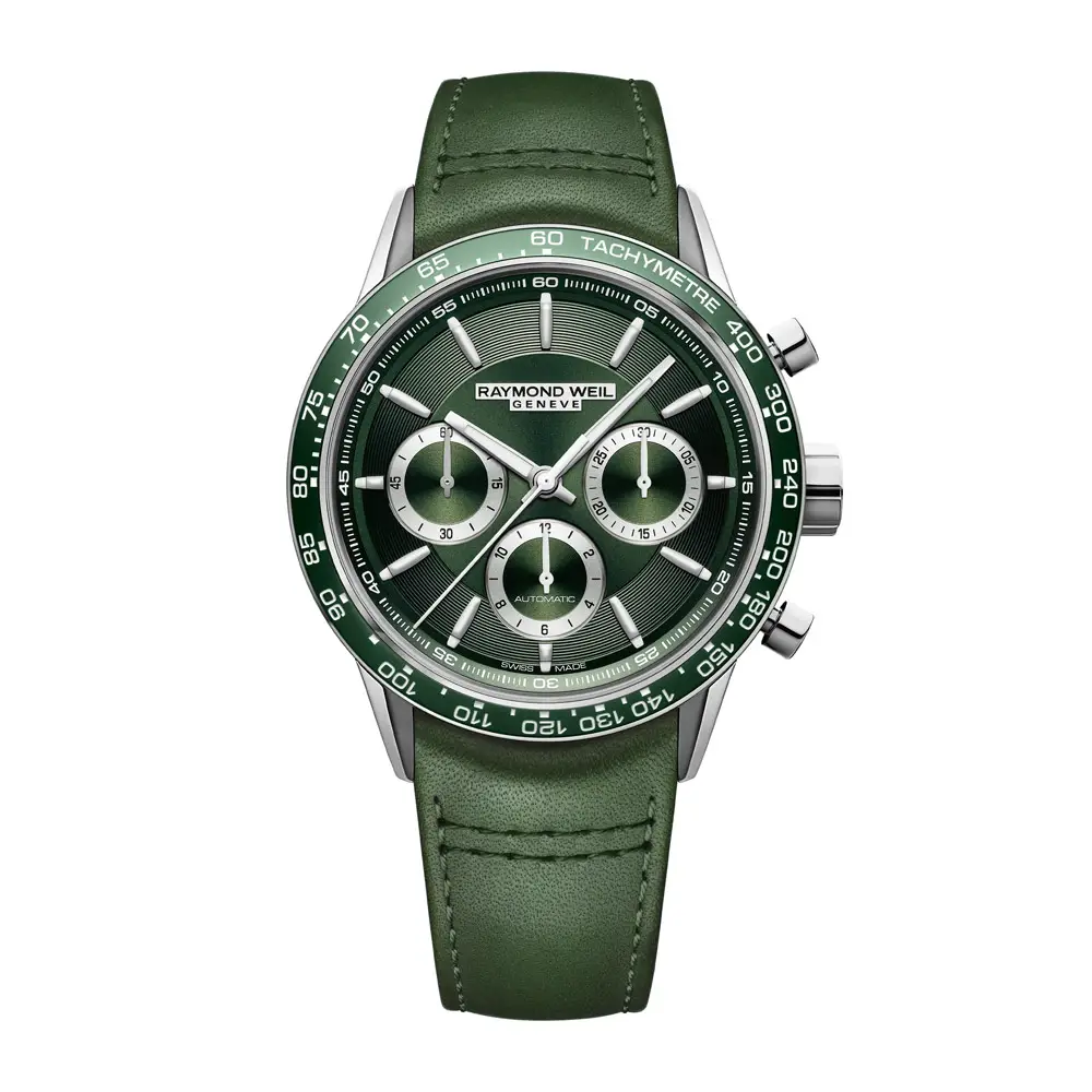 Raymond Weil Freelancer 7741-SC7-52021 — это утончённый мужской хронограф, объединяющий элегантность, техническое совершенство и спортивный стиль. Модель из коллекции Freelancer выделяется своим ярким зелёным дизайном и швейцарским качеством исполнения, идеально подходящим современному мужчине.