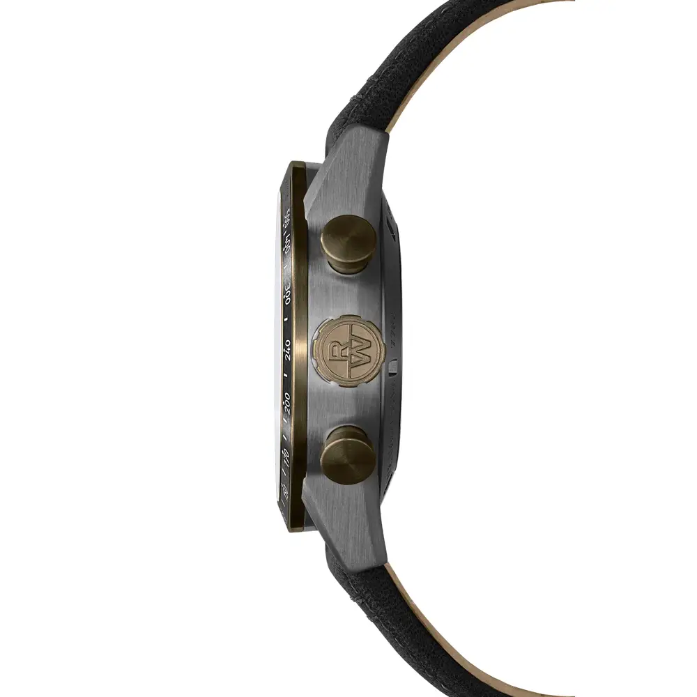 В основе часов — автоматический калибр RW5030 с запасом хода до 62 часов, видимый через прозрачную заднюю крышку из сапфирового стекла. Хронограф дополнен тахиметрической шкалой на безеле, пульсометром и окном даты на 6 часах. Водонепроницаемость до 100 метров и завинчивающаяся головка обеспечивают надёжность и функциональность в любых условиях.