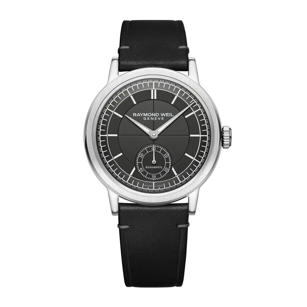 Задняя крышка корпуса оснащена сапфировым стеклом, позволяющим увидеть сложный автоматический механизм и 'W-образный' ротор, являющийся знаком часового мастерства бренда Raymond Weil. Часы дополнены черным ремешком из натуральной телячьей кожи с традиционной пряжкой из нержавеющей стали, обеспечивающим комфорт и стиль.