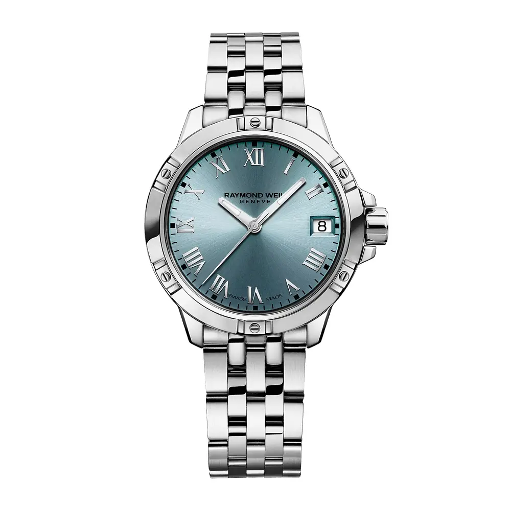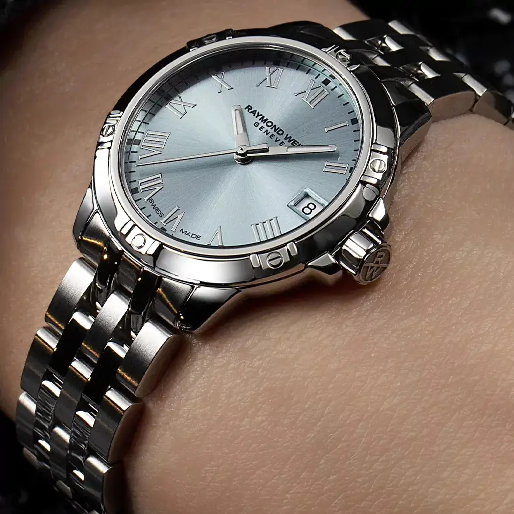 Raymond Weil Tango 5960-ST-00500 — это гармоничное сочетание элегантности, функциональности и швейцарской точности. Корпус диаметром 30 мм выполнен из нержавеющей стали и защищён сапфировым стеклом, устойчивым к царапинам. Светло-голубой циферблат с солнечным узором украшен римскими цифрами, светящимися стрелками и окном даты на отметке 3 часа, что придаёт модели утончённость и практичность.