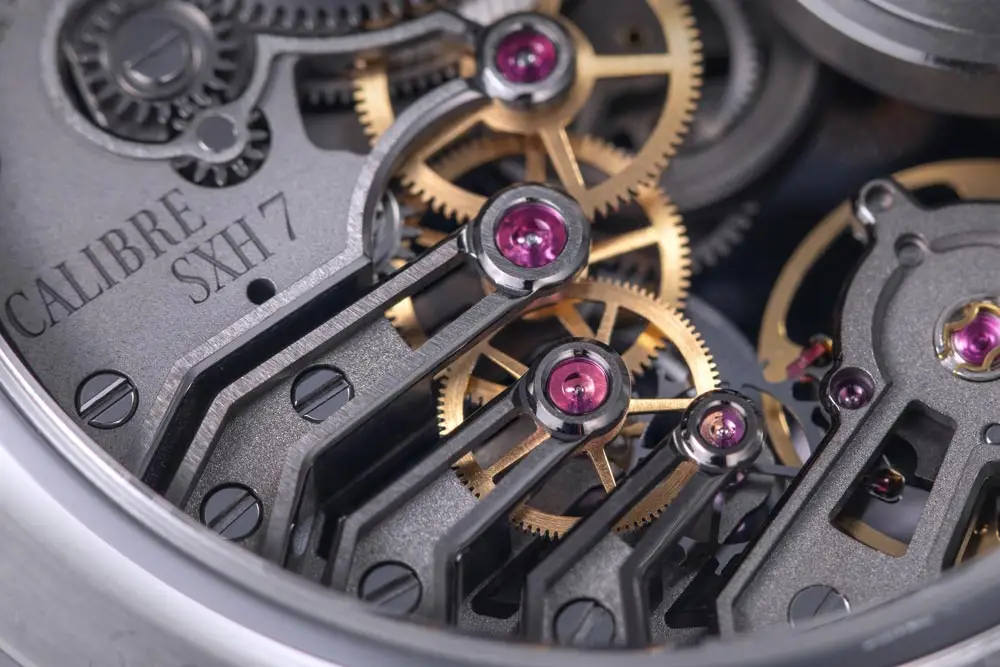 В основе часов лежит автоматический механический калибр SXH7 с частотой 28 800 полуколебаний в час (4 Гц) и запасом хода около 60 часов. Его точный механизм, видимый сквозь скелетонированный циферблат, демонстрирует изысканно декорированные вручную мосты и микроротор, радуя любого ценителя часового искусства.