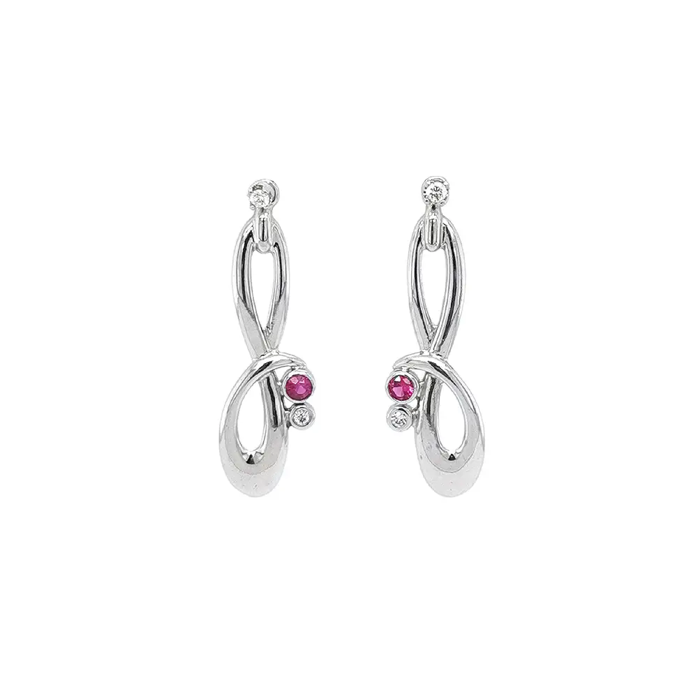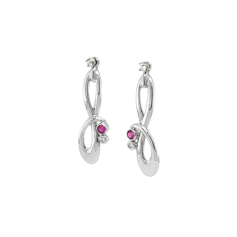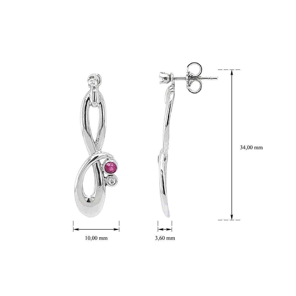 Роскошные серьги из белого золота с рубином и цирконами