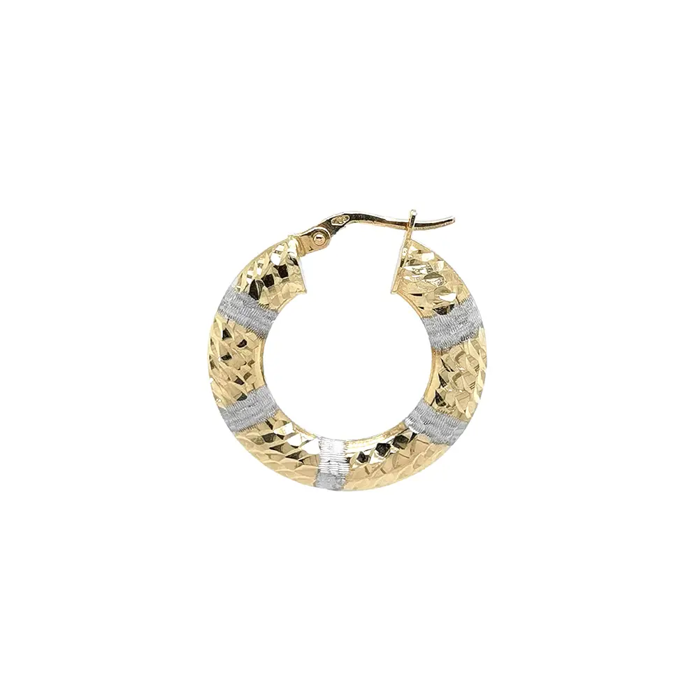 Роскошные золотые серьги-кольца в двухцветном исполнении отличаются чистым и вневременным дизайном, основанным на гармоничном сочетании жёлтого и белого золота. Элегантный контраст оттенков придаёт украшению утончённый характер и позволяет легко сочетать его с другими золотыми изделиями.