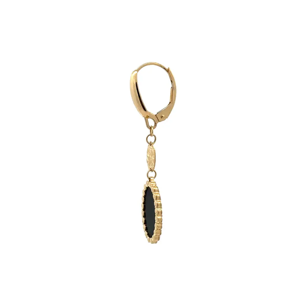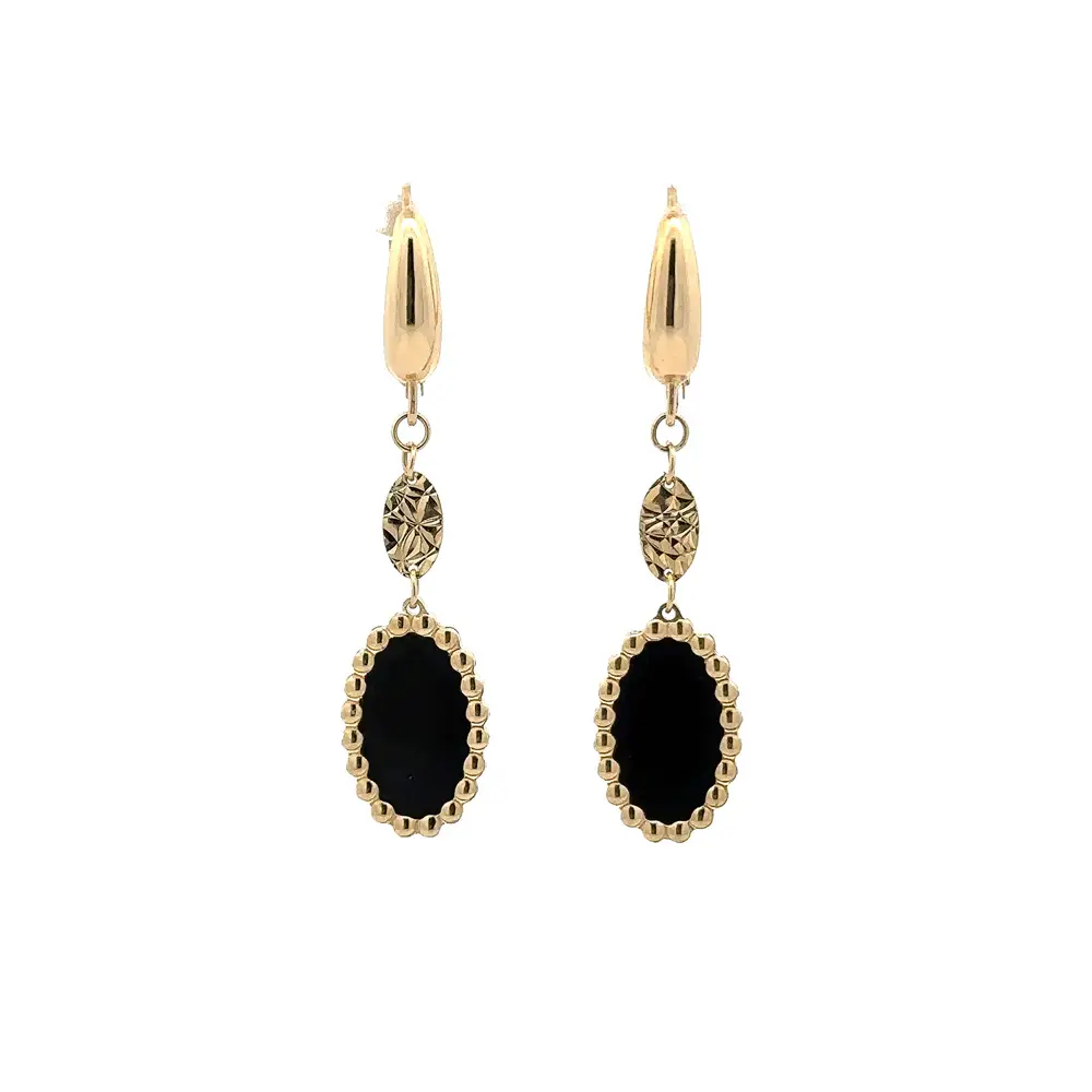 Роскошные золотые серьги с овальным черным камнем и нежными деталями