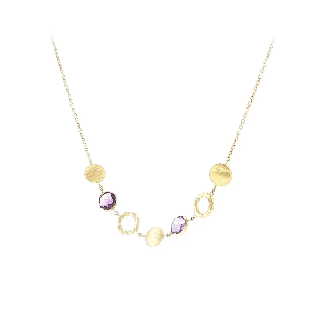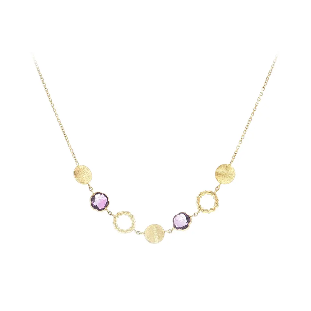 Побалуйте себя украшением, которое подчеркнет вашу индивидуальность, или порадуйте близких оригинальным подарком. Золотое колье с фиолетовыми камнями — символ элегантности, вкуса и роскоши, который никогда не выходит из моды.