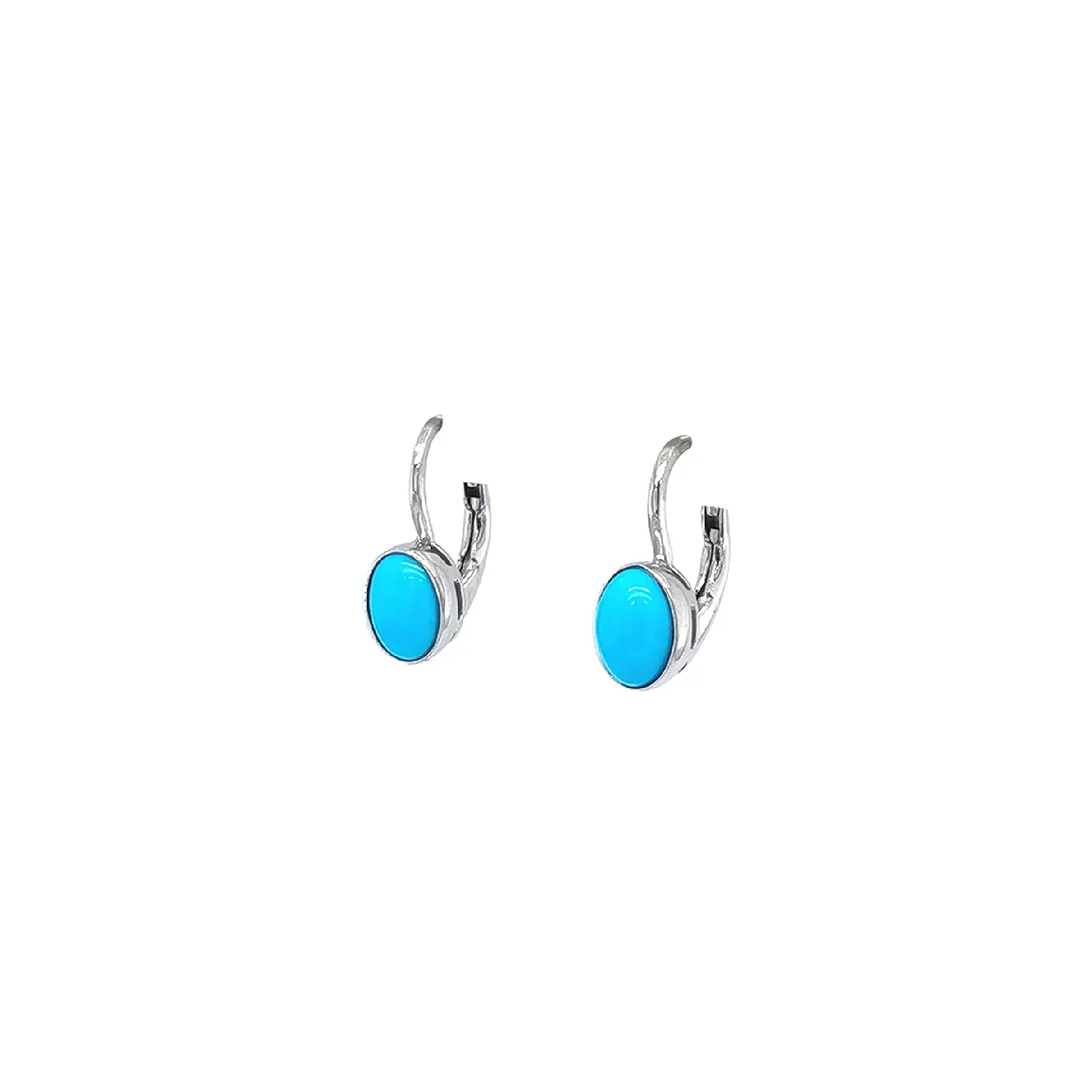Эти утончённые серьги из белого золота украшены ярким бирюзовым овальным камнем в гладкой оправе, создавая стильный и одновременно классический образ. Интенсивный оттенок подчеркивает черты лица, а блестящее белое золото придает украшению современную элегантность.