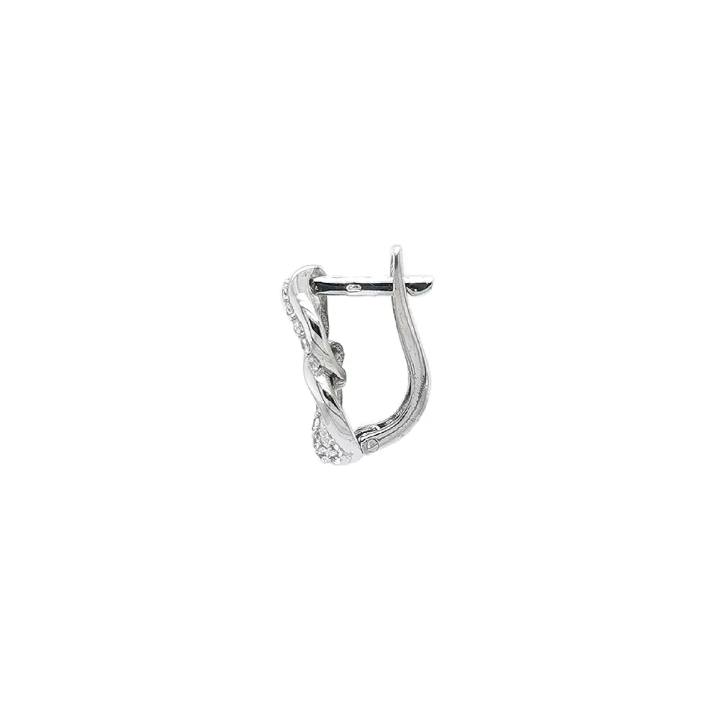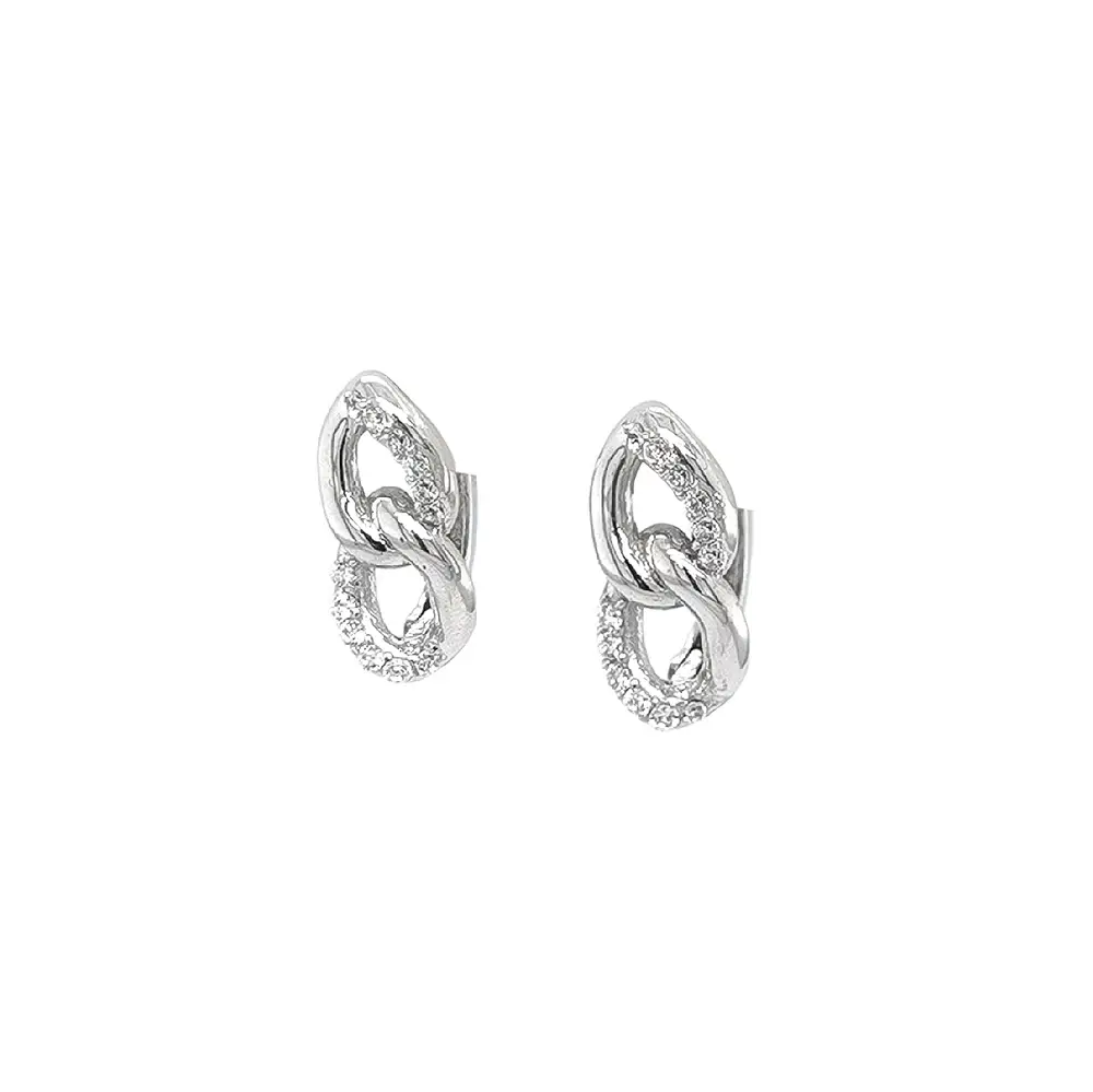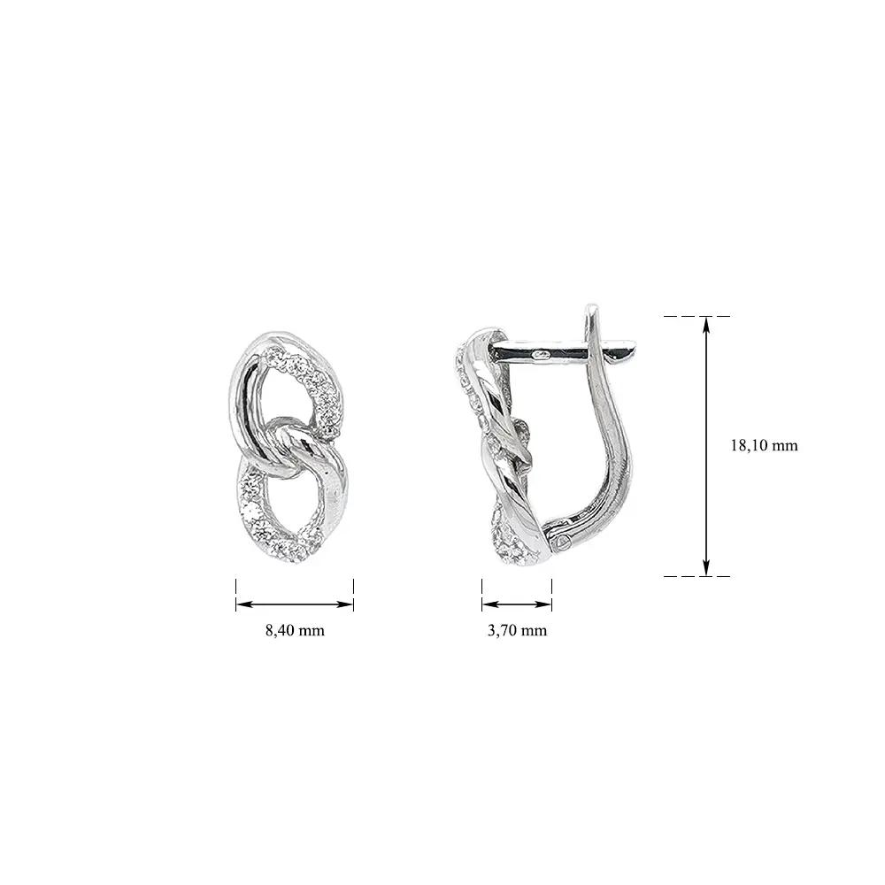 Серьги из белого золота с цирконами в переплетении звеньев