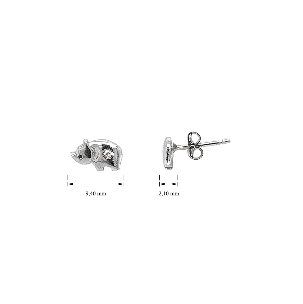 Серьги "Носорог" из белого золота с цирконами