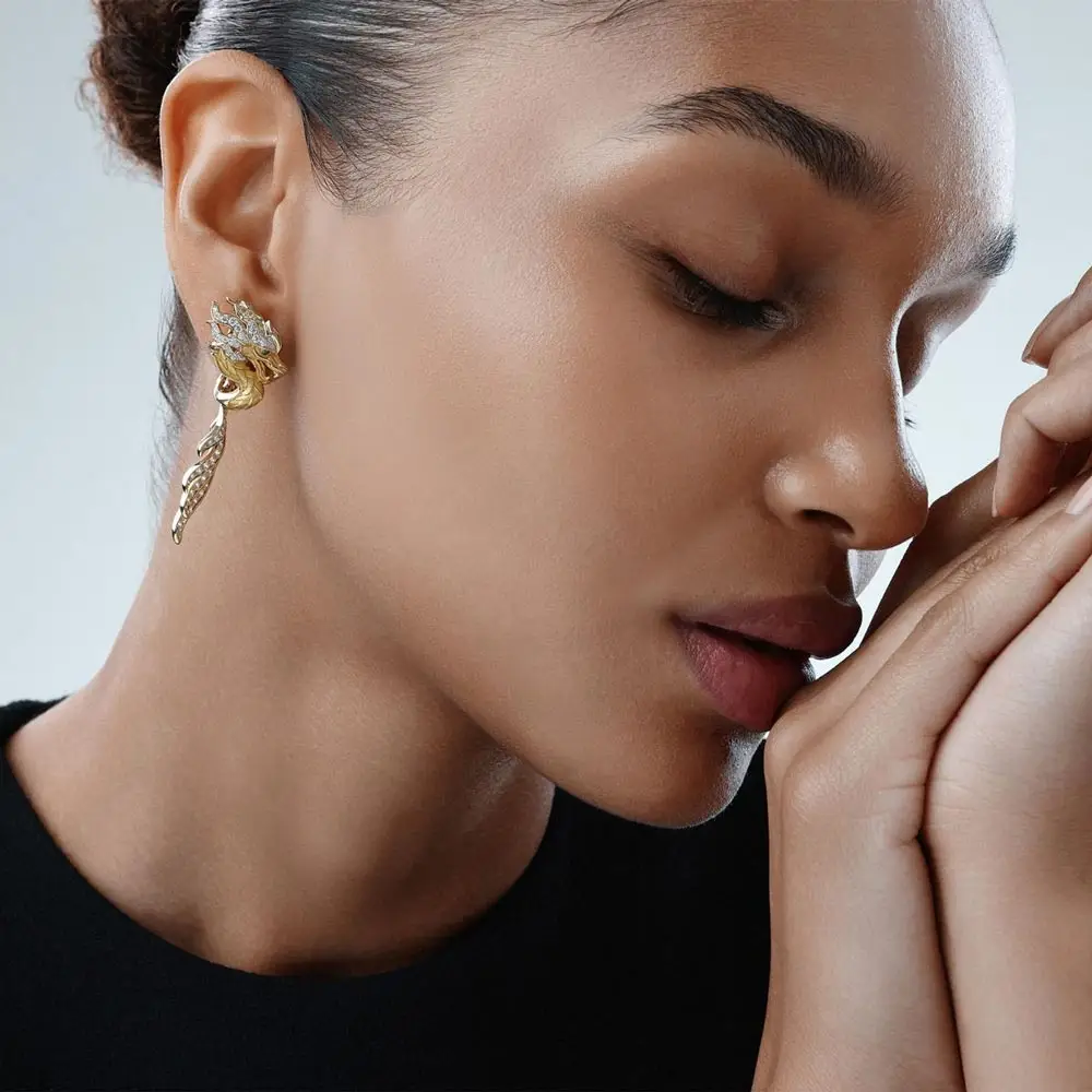 Этот яркий дизайн из коллекции New Shanghai сочетает в себе традиционное мастерство Carrera y Carrera с художественной эстетикой и духовной символикой Дальнего Востока. Эти серьги созданы для женщин, которые не боятся выделяться из толпы и выражать свой характер с помощью исключительных украшений.