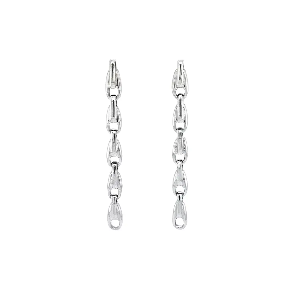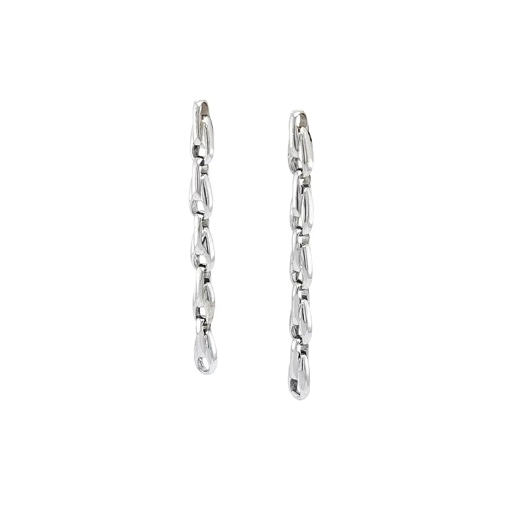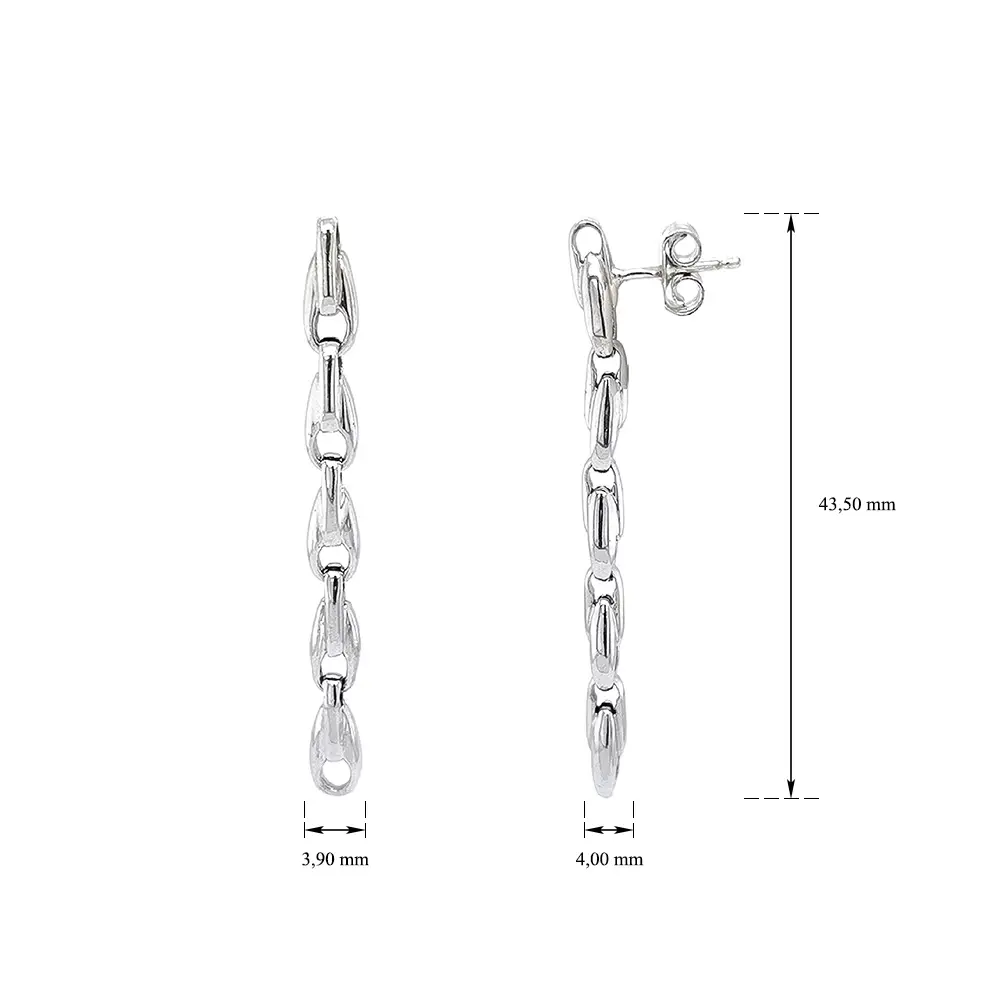 Серьги-пусеты из белого золота с элегантным дизайном цепочки