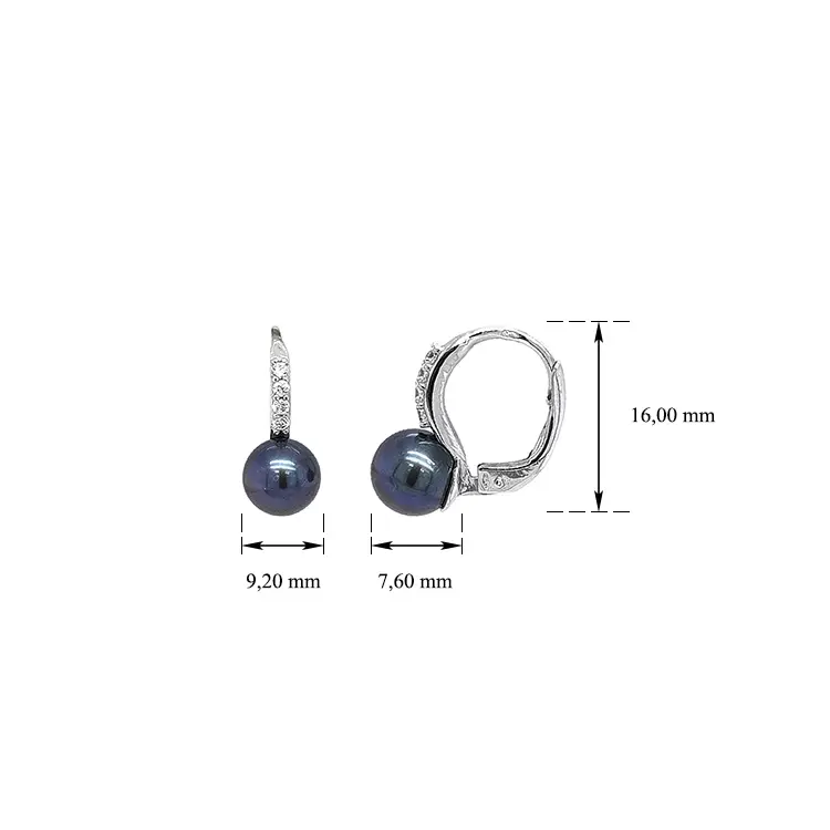 Серьги с черным жемчугом и цирконами