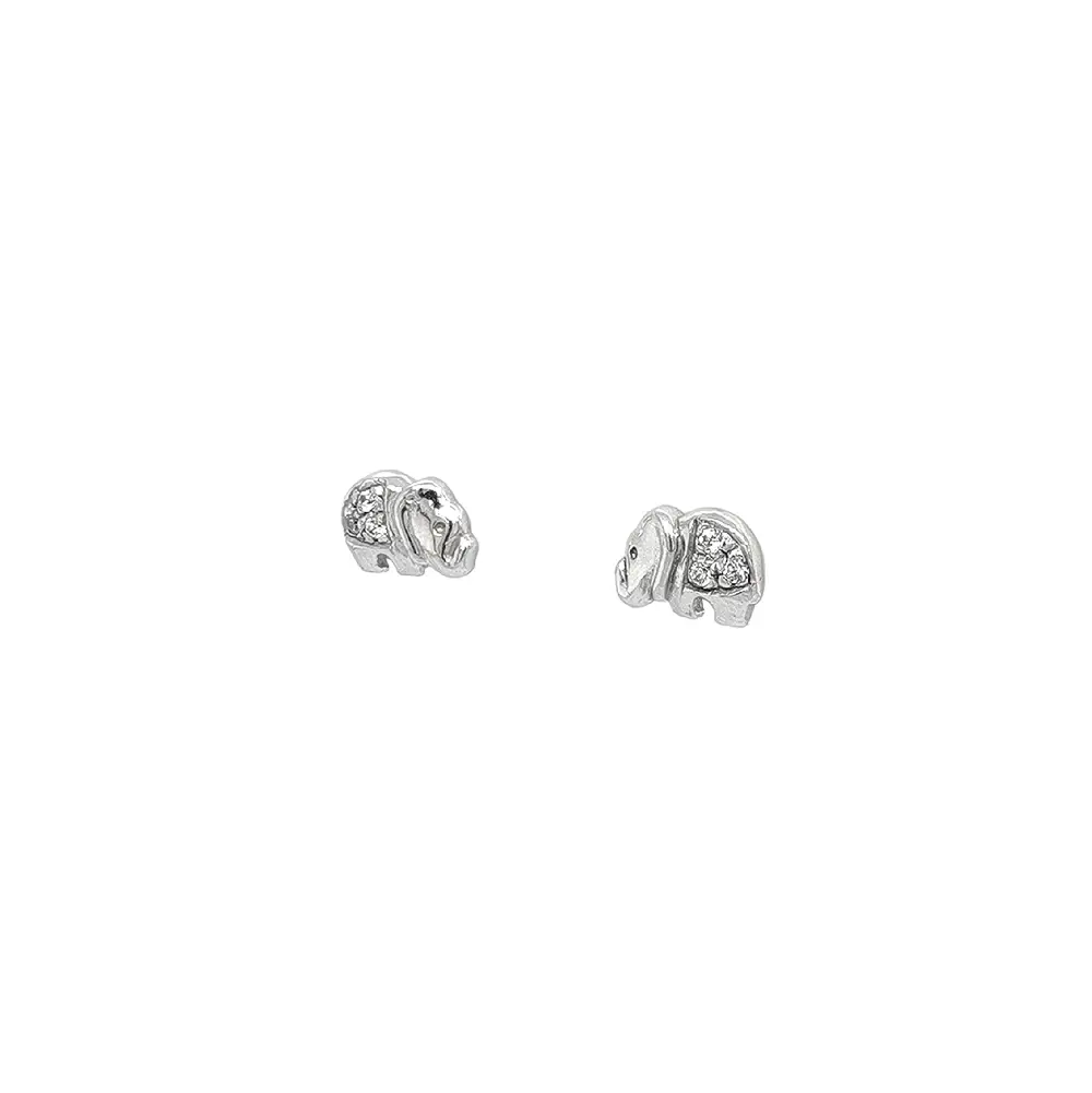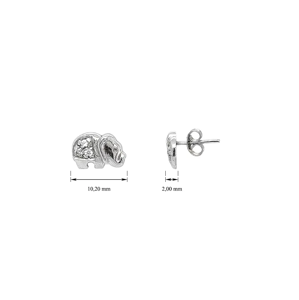 Серьги "Слон" из белого золота со сверкающими цирконами