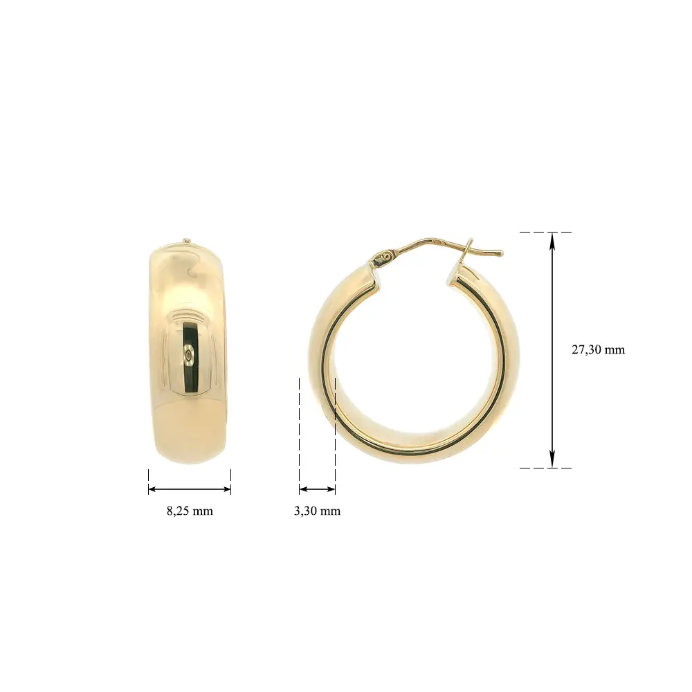 Широкие серьги-кольца из жёлтого золота 14 карат, Ø 27,30 мм